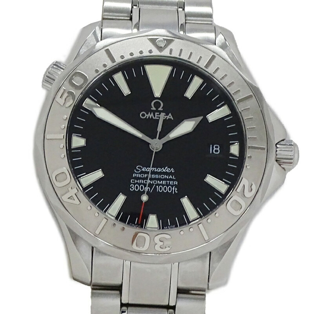 Pre-Owned OMEGA Seamaster 2230.50 Watch Men's 300m Date Automatic AT Stainless Steel SS White Gold WG Bezel Silver Black Polished