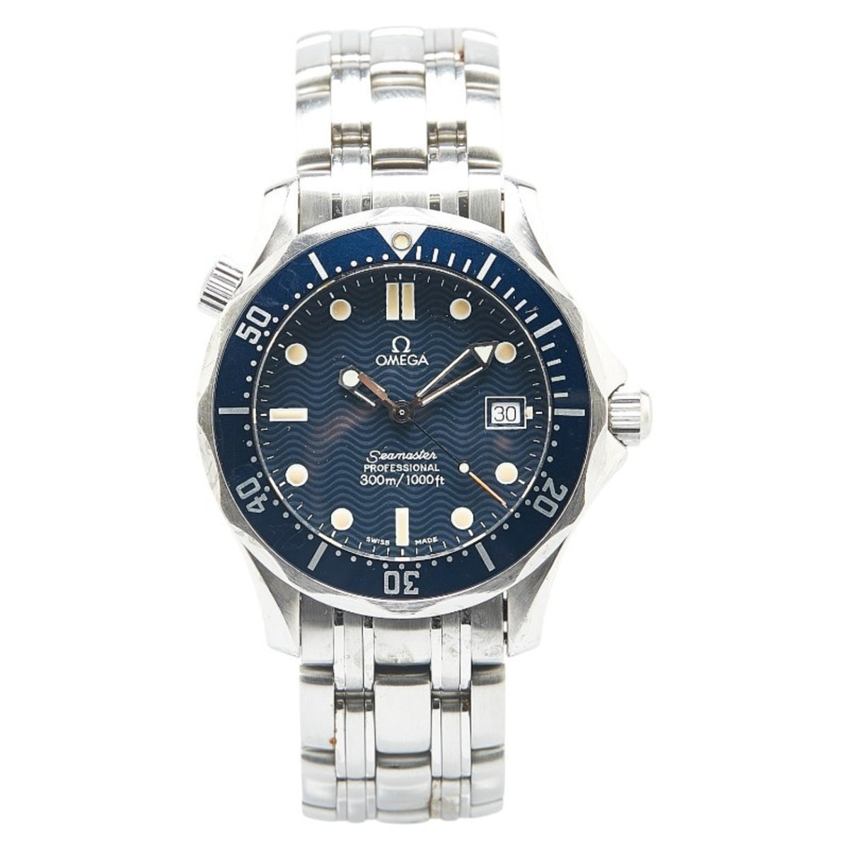 Pre-Owned OMEGA Seamaster Watch 2561.80 Quartz Navy Dial Stainless Steel Ladies