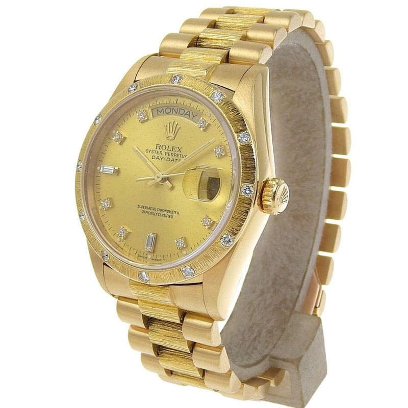 Pre-Owned Like new Rolex Day-Date 18108 9 (circa 1986) Gold Dial, Diamond Bezel, 18K Yellow Gold, 140.8g, Automatic