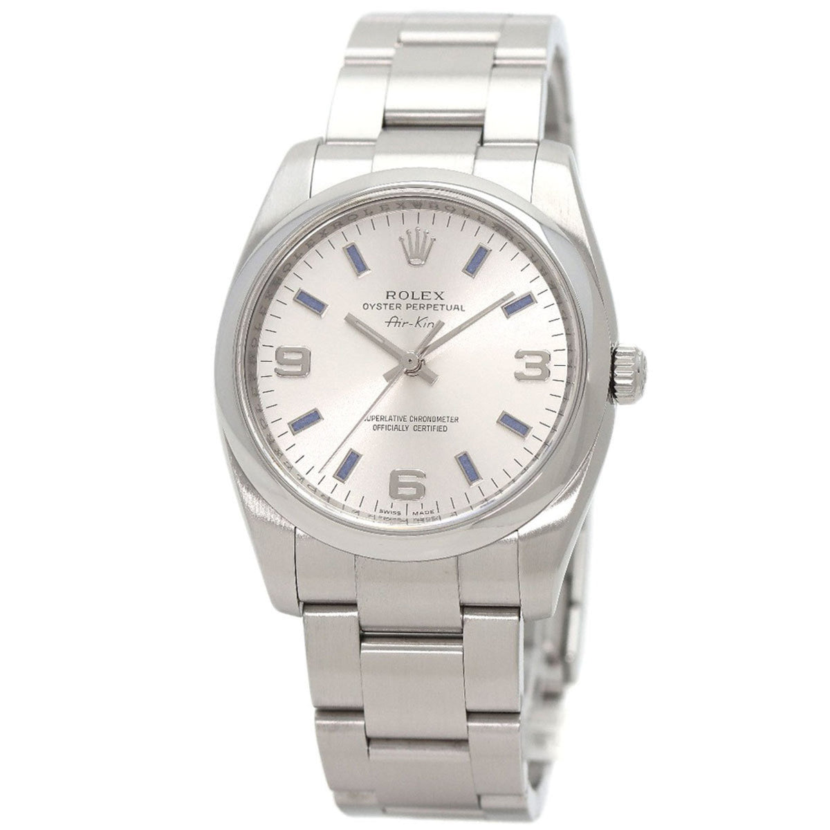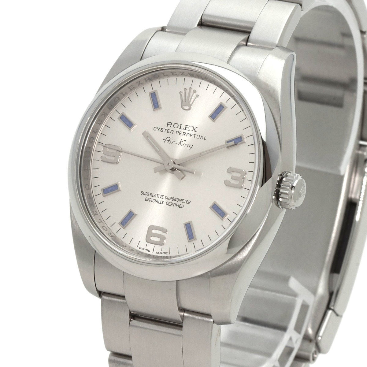 Pre-Owned Rolex 114200 Air King Silver 369 Blue Bar Watch Stainless Steel/SS Men's ROLEX