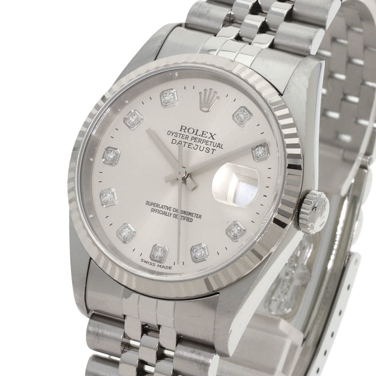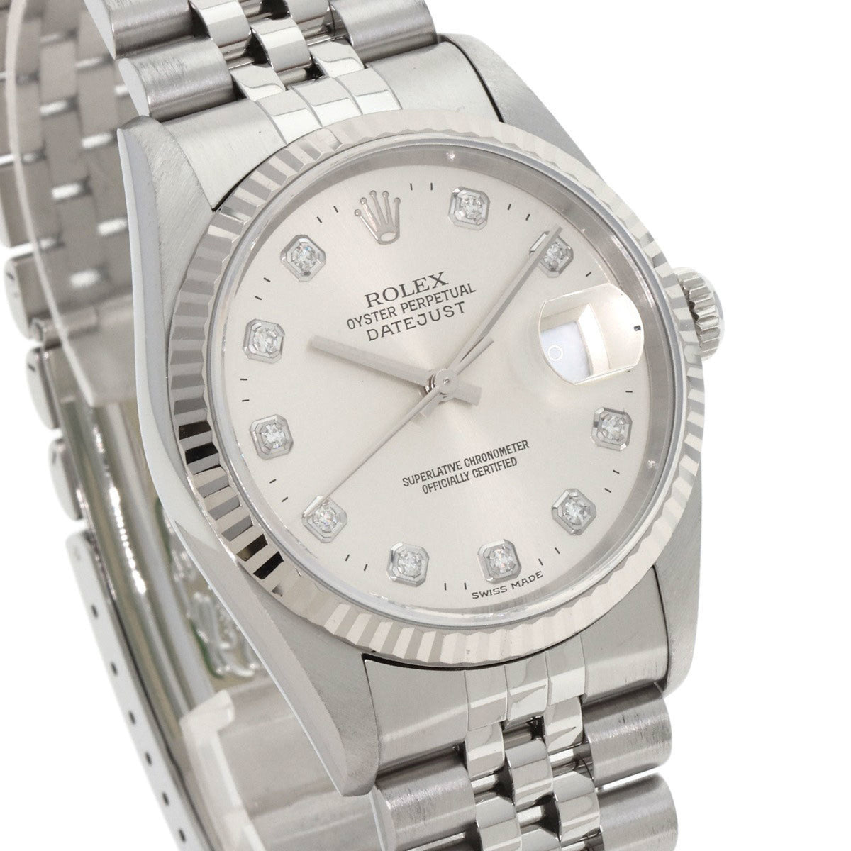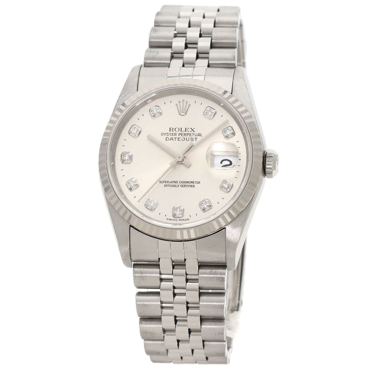 Pre-Owned Rolex 16234G Datejust 10P Diamond Watch Stainless Steel SS Men's