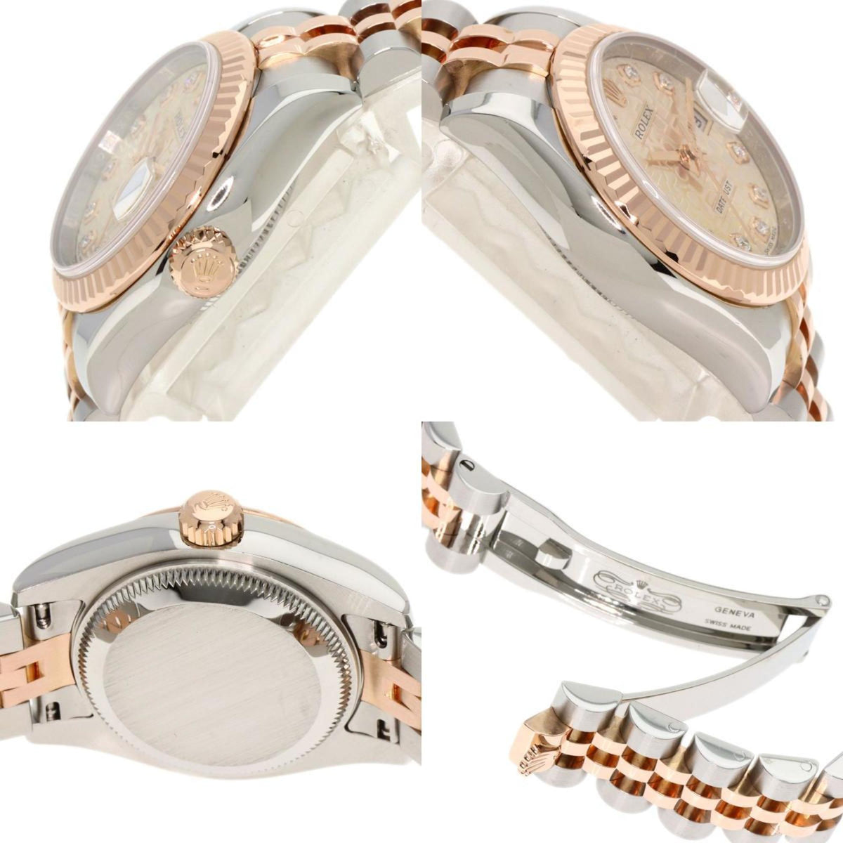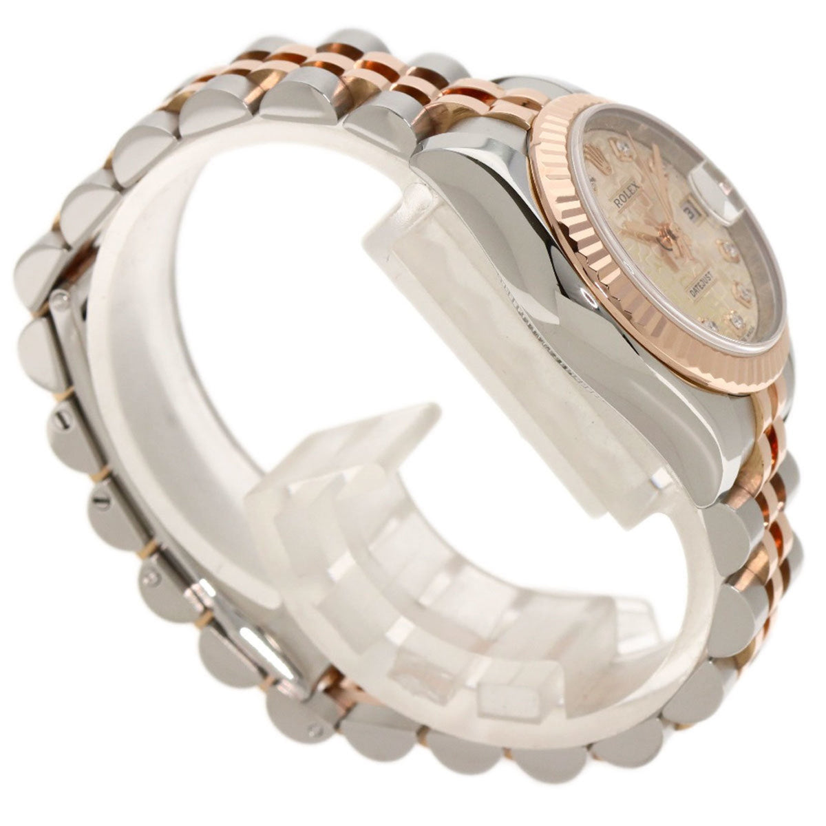 Pre-Owned Rolex 179171G Datejust 10P Diamond Watch Stainless Steel SSxK18PG Everose Gold Ladies