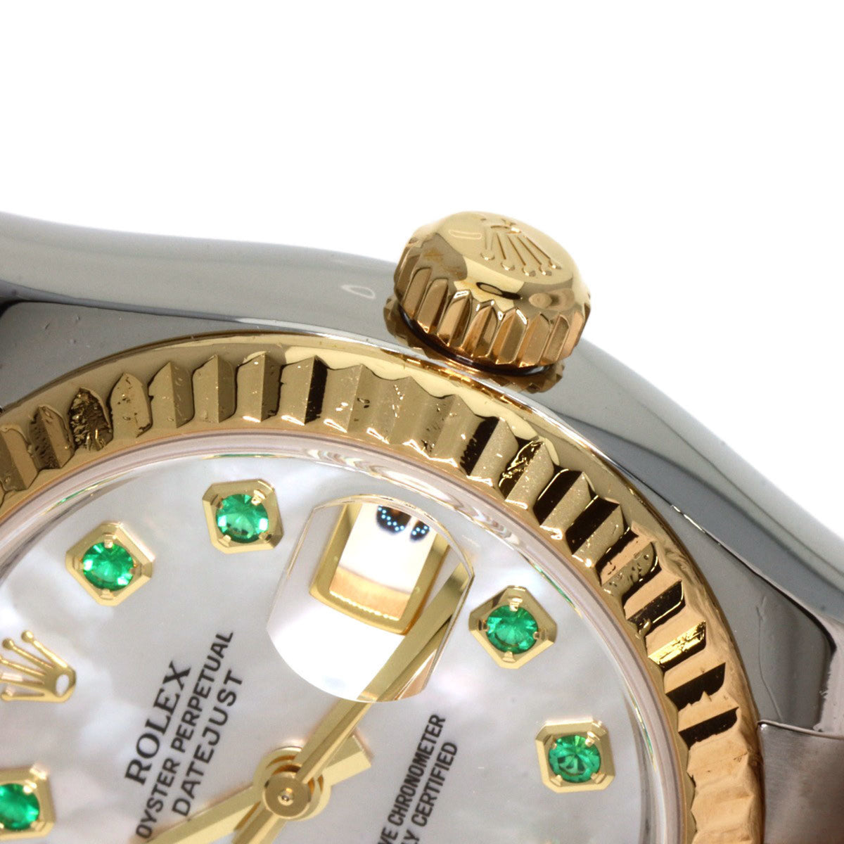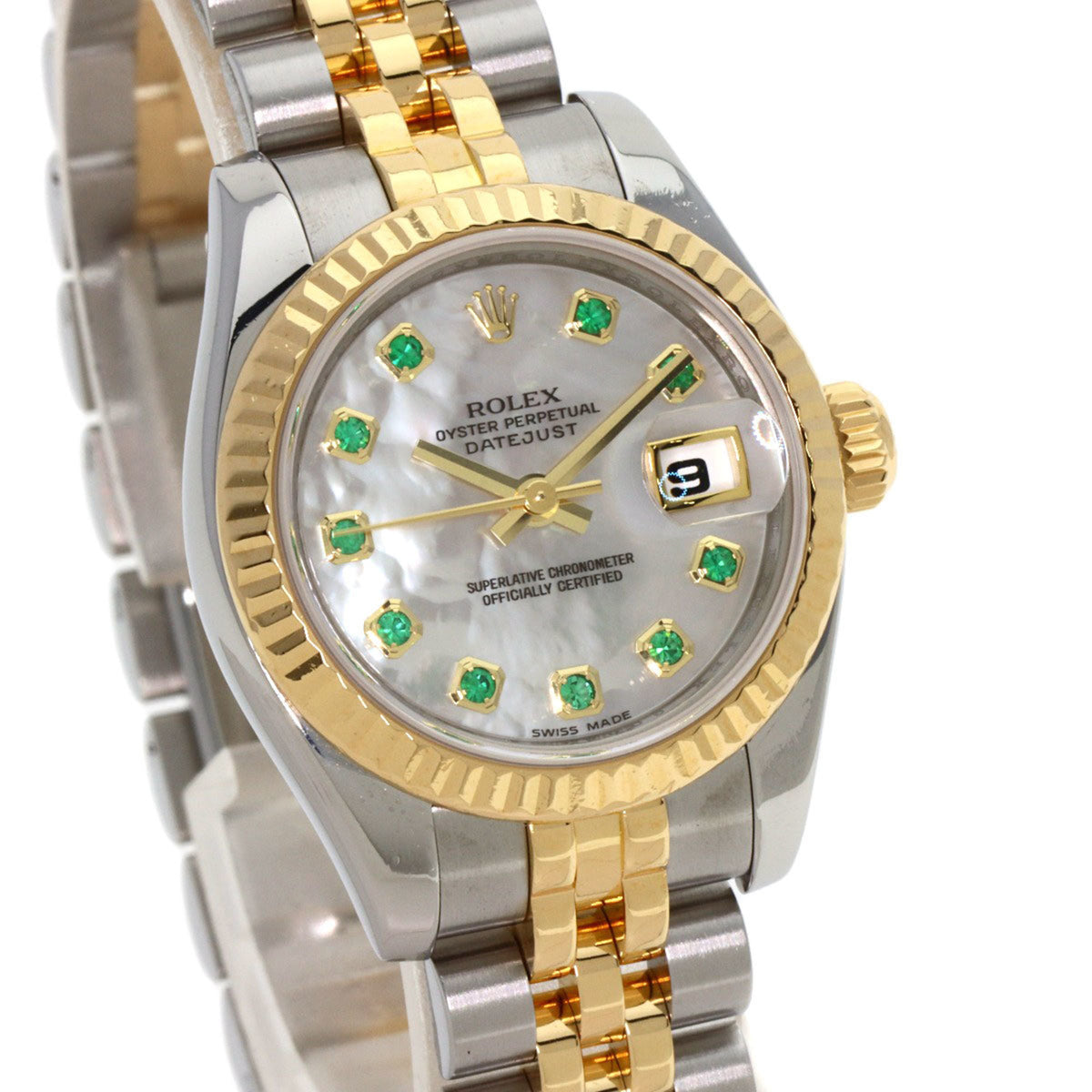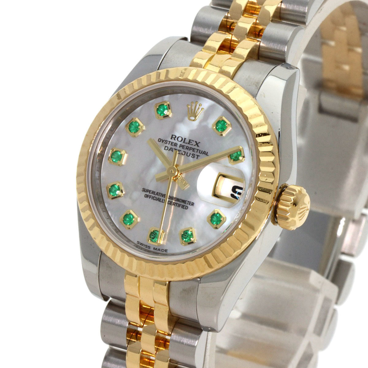 Pre-Owned Rolex 179173NGE Datejust 10P Emerald Watch Stainless Steel/SSx18KYG Women's