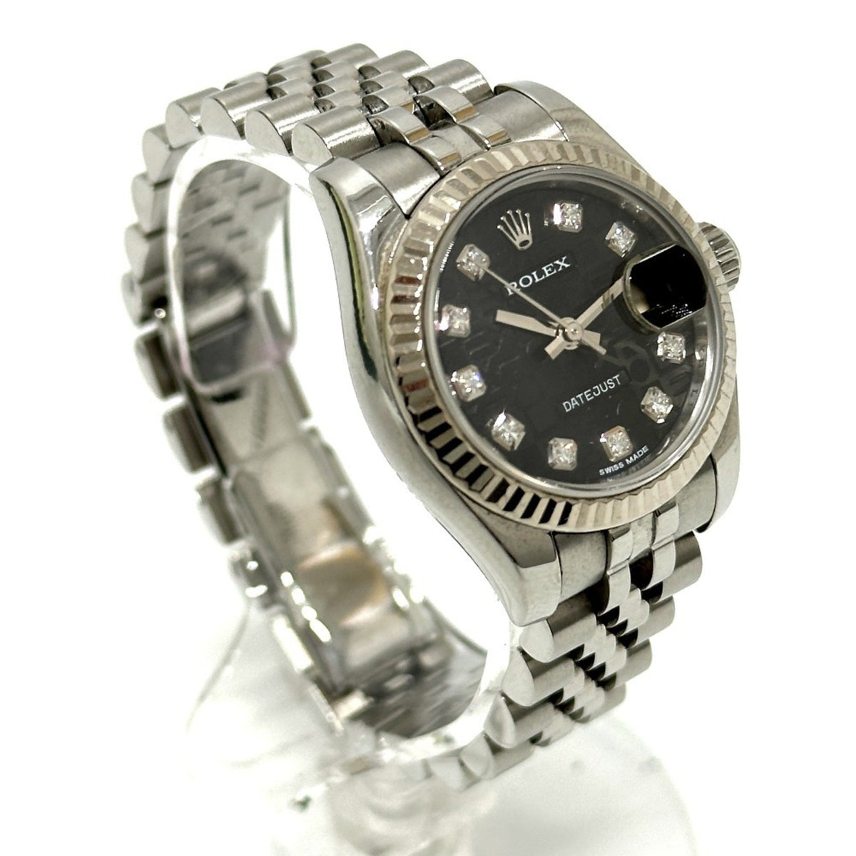 Pre-Owned ROLEX 179174G 10P Diamond Computer Random Automatic Watch SS WG Ladies White