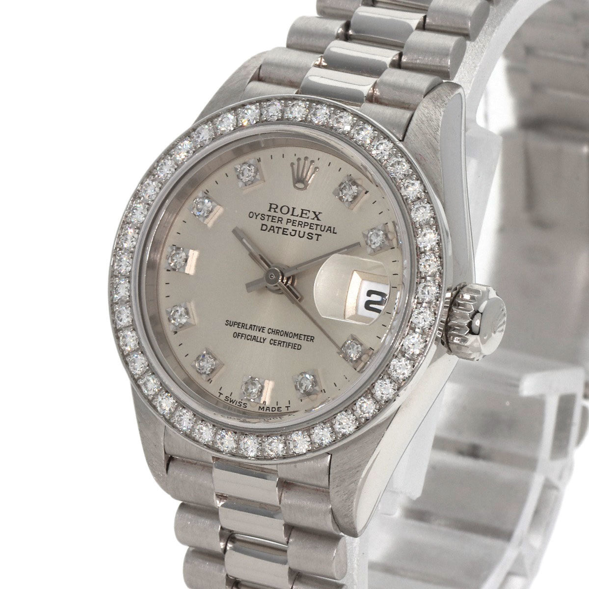 Pre-Owned Rolex 69136G Datejust 10P Bezel Diamond Watch Platinum PT Ladies ROLEX