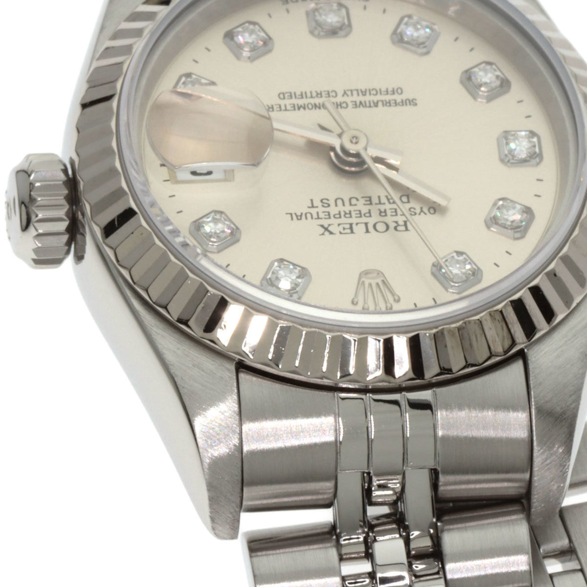 Pre-Owned Rolex 69174G Datejust 10P Diamond Watch in Stainless Steel SS 18K White Gold for Women