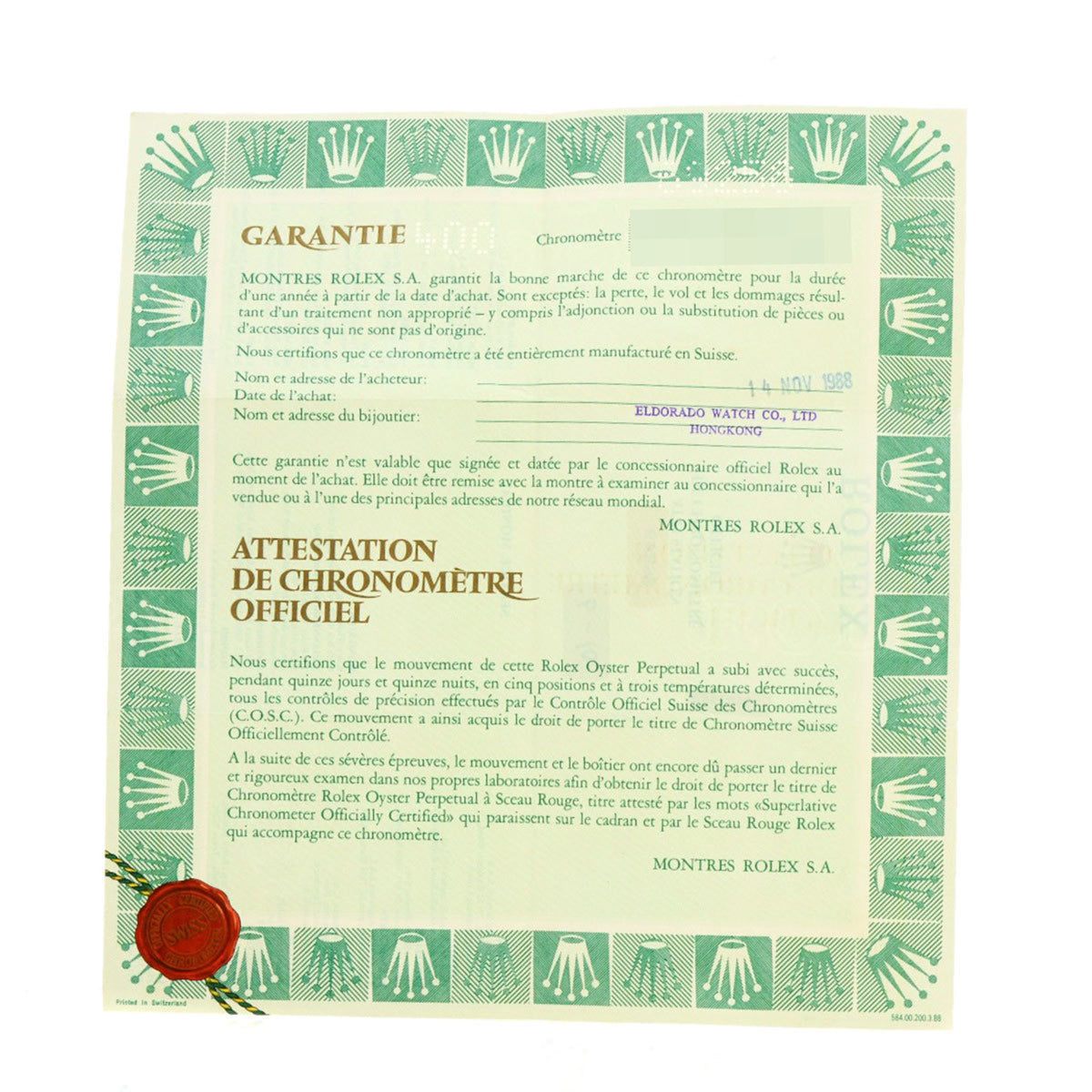 - Accessories: Certificate