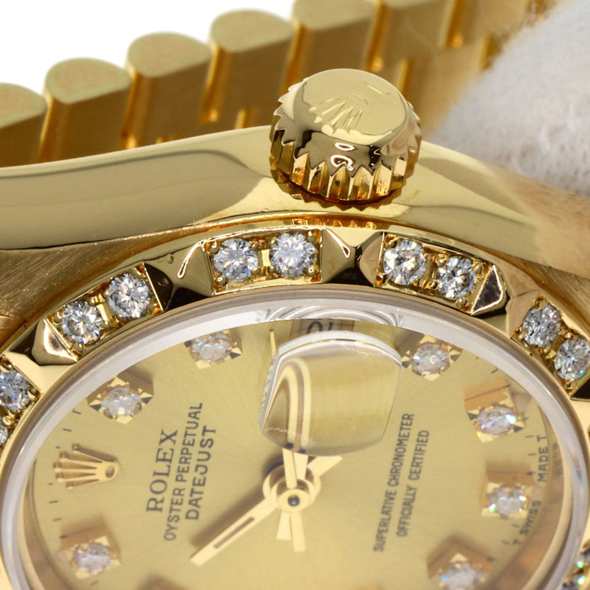 Pre-Owned Rolex 69258G Datejust 10P Diamond Bezel Watch in 18K Yellow Gold/18KYG/Diamond Women's