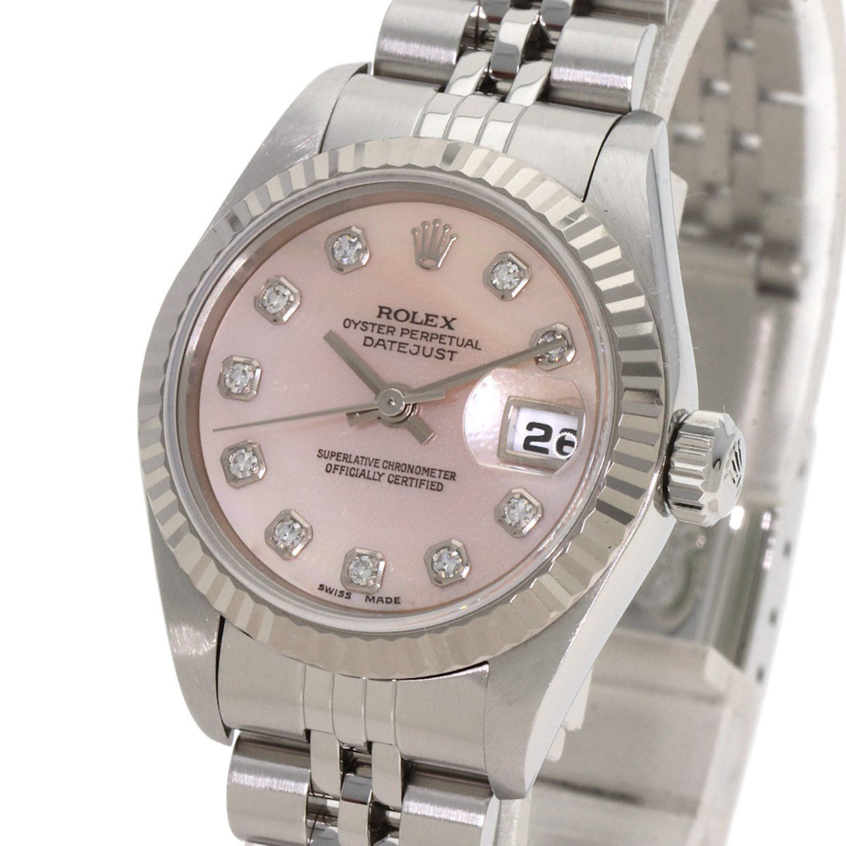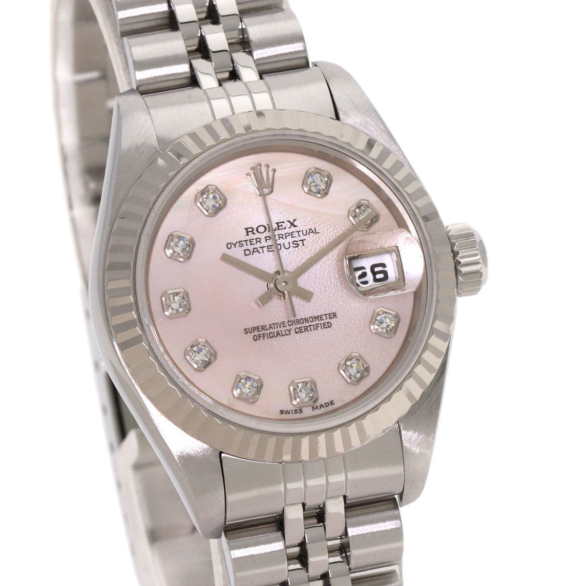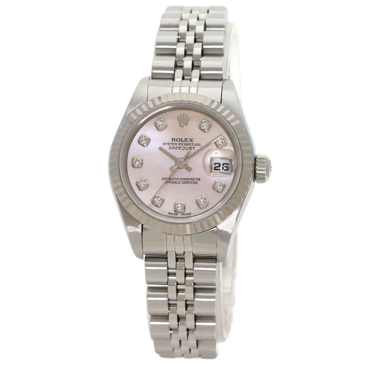 Pre-Owned Rolex Datejust 10P Diamond Watch Stainless Steel SS SSxK18WG Ladies ROLEX