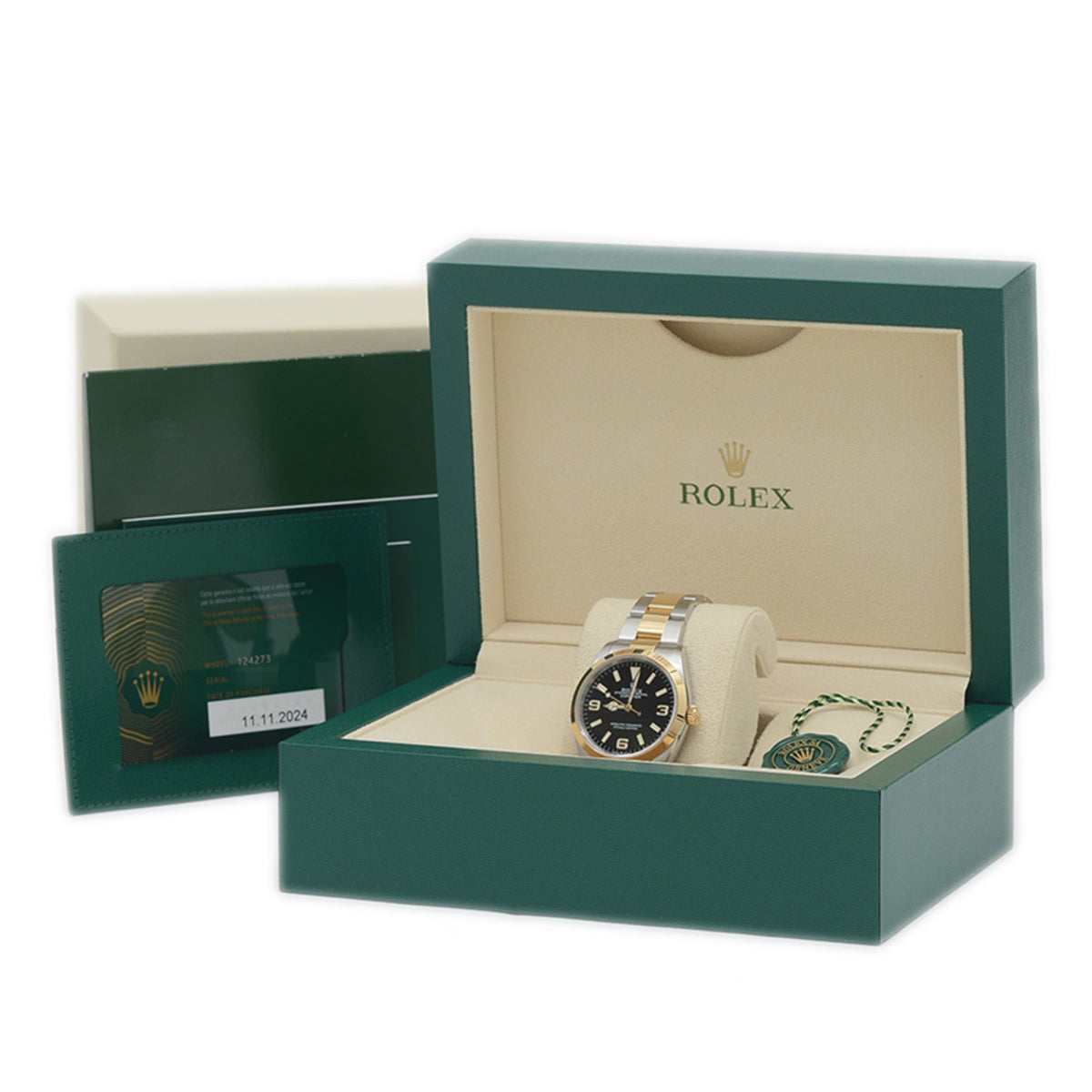 Pre-Owned Rolex Explorer 36 Watch 124273 Stainless Steel 18K Yellow Gold Two-tone Black Dial Random Serial Number