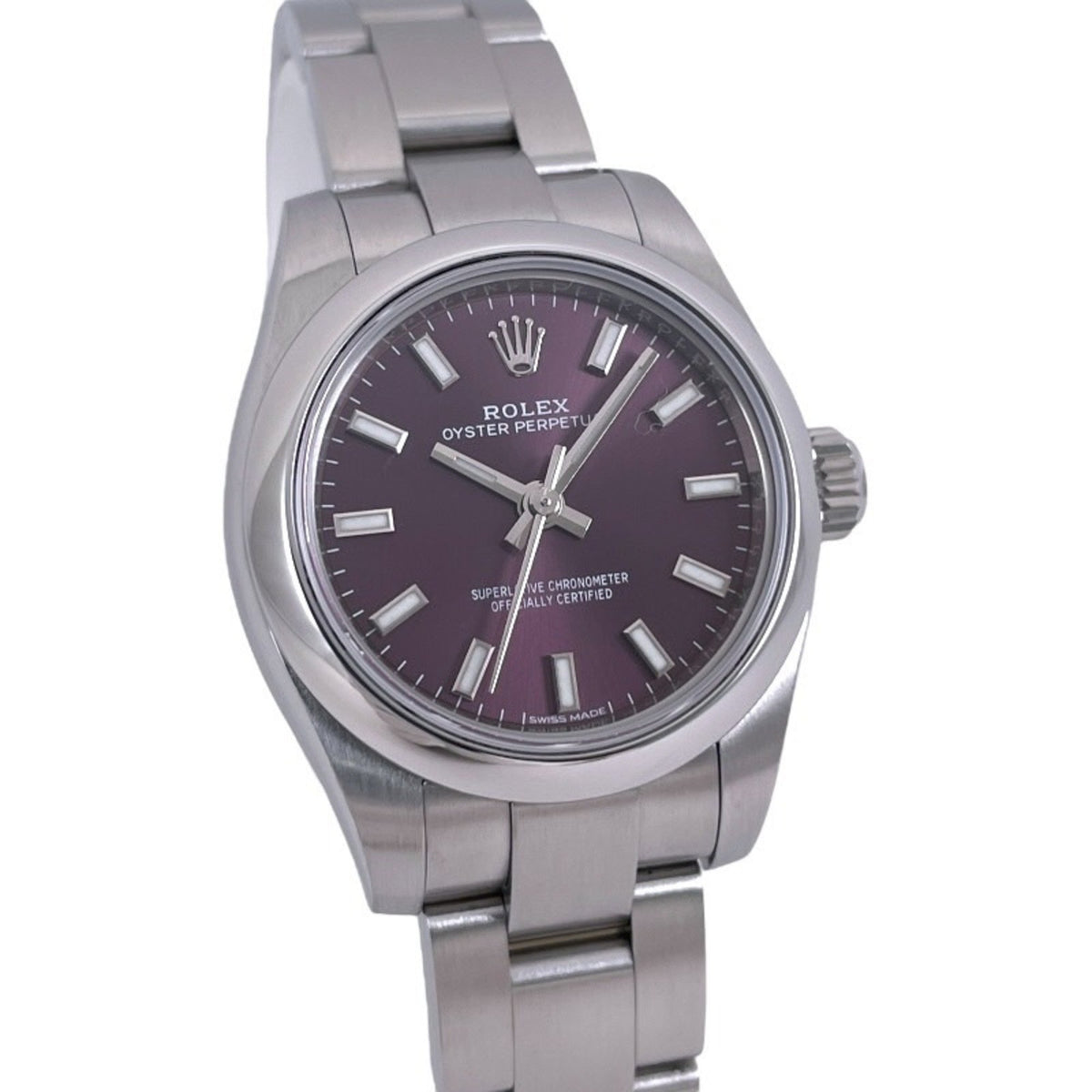 Pre-Owned ROLEX Oyster Perpetual 176200 Stainless Steel Women's Watch, Random Number, 2019 Warranty, Red Grape Dial