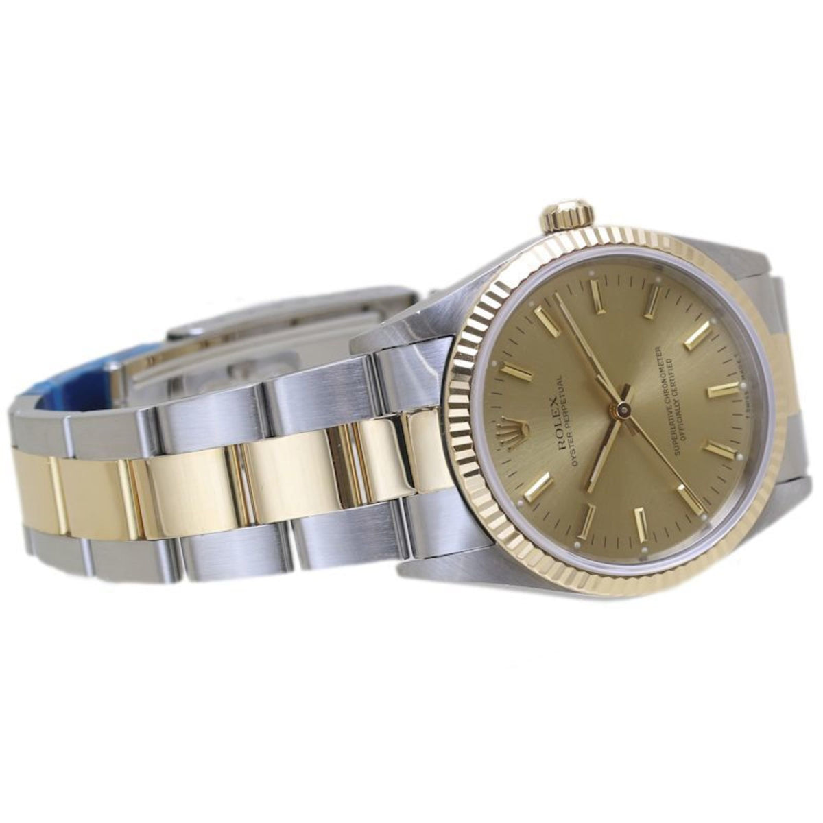 Pre-Owned ROLEX Oyster Perpetual Champagne Gold 14233 Men's Watch in 18K Yellow and Stainless Steel 40082