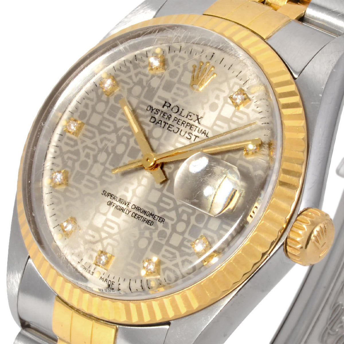 Pre-Owned Rolex ROLEX 16013G Datejust R series (manufactured in 1987) Automatic watch, silver/printed computer dial, SS x YG, 10P diamond index, men's IT1UY4JVNF5S