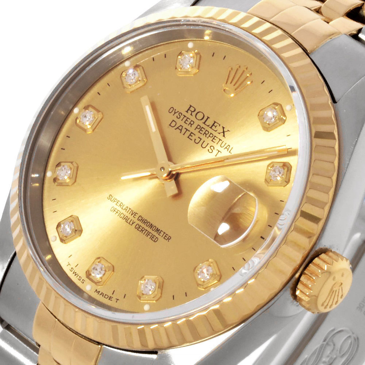 Pre-Owned Rolex ROLEX 16233G Datejust W-number watch, automatic, champagne dial, YG x SS combination, 10P diamond index, men's