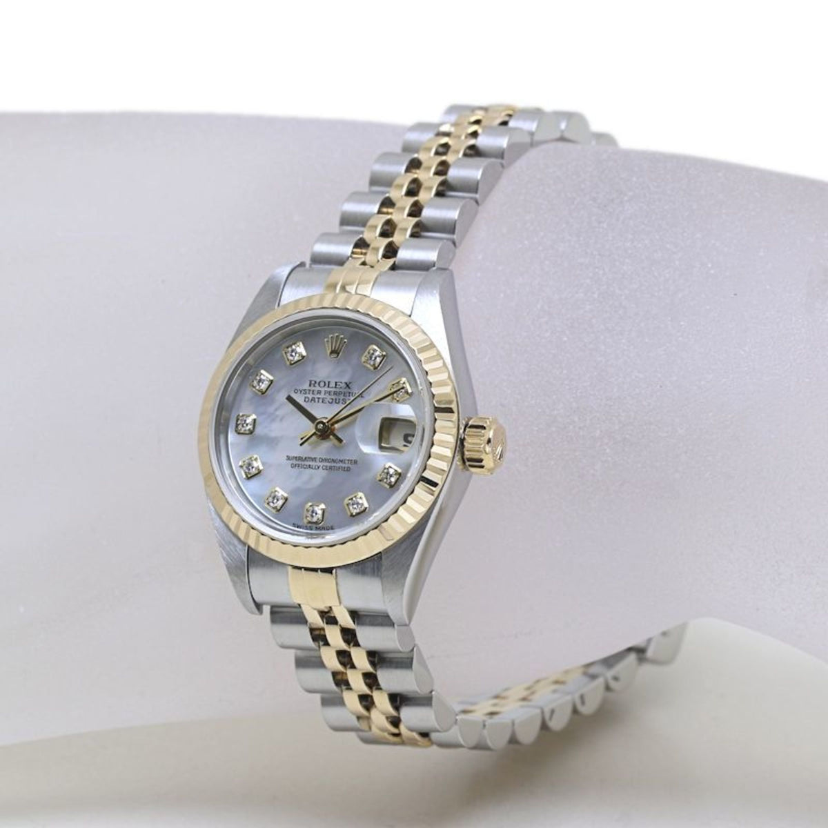 Pre-Owned ROLEX Rolex Datejust 10-Piece Diamond White Shell Watch 79173NG Women's 18K Yellow Gold and Stainless Steel 40080