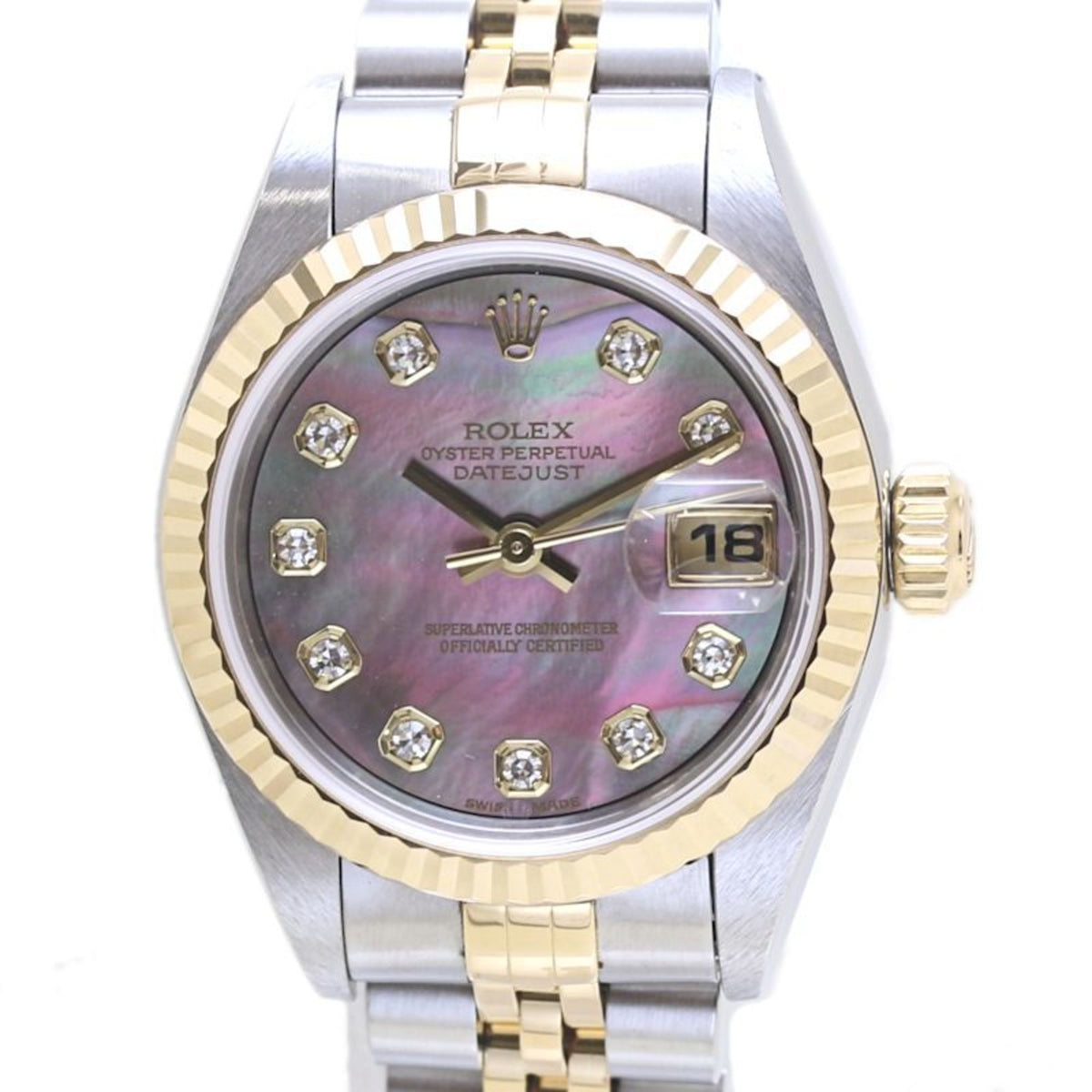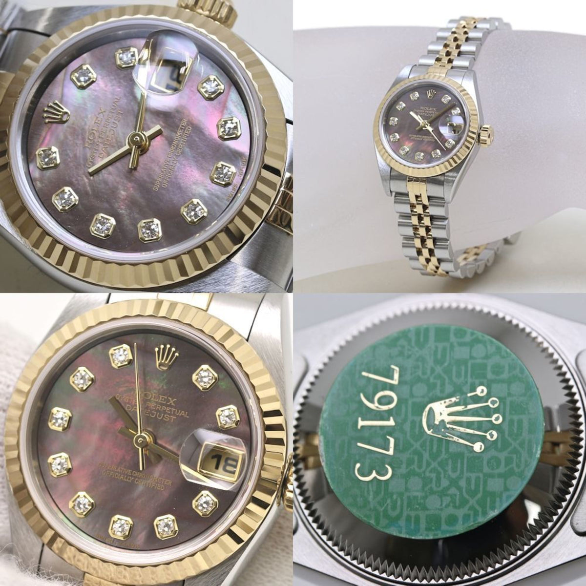 Pre-Owned ROLEX Rolex Datejust 10P Diamond 79173NG Black Shell K18YG Yellow Gold x Stainless Steel Ladies 40010 Watch