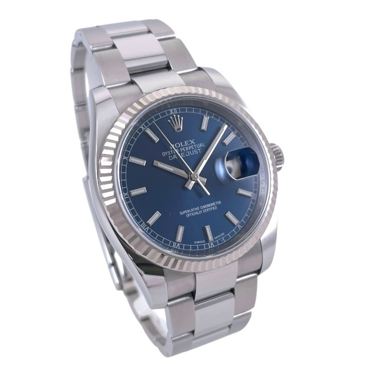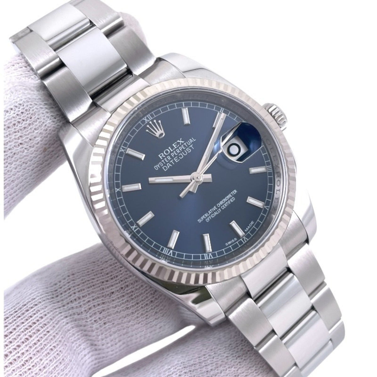 Pre-Owned ROLEX Rolex Datejust 116234 Men's Stainless Steel White Gold Watch, Random Number, 2020 Warranty, Blue Dial, Oyster Bracelet
