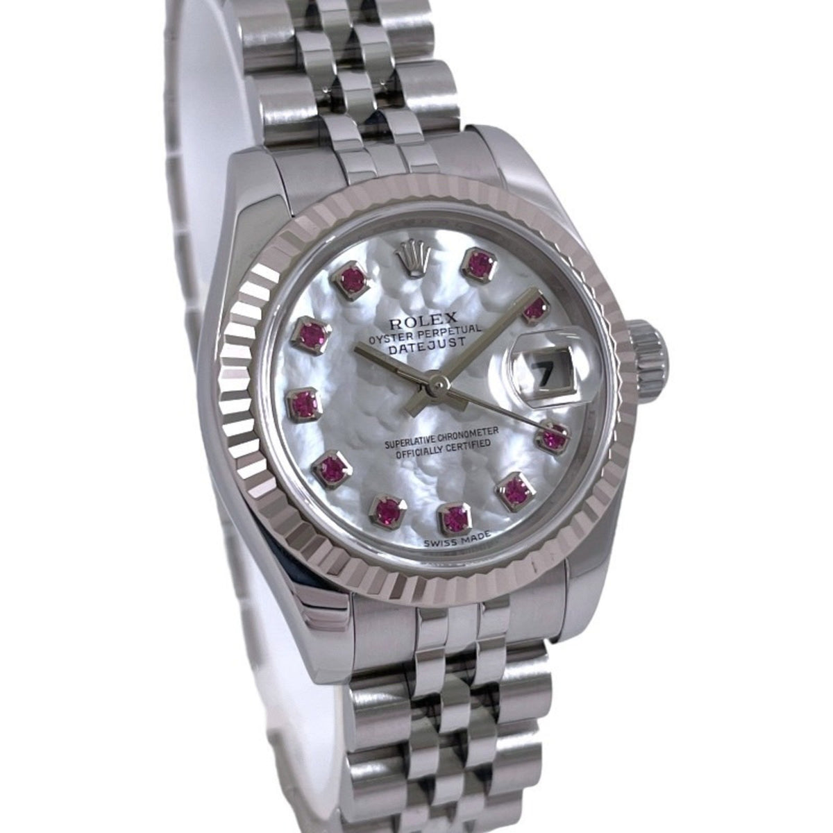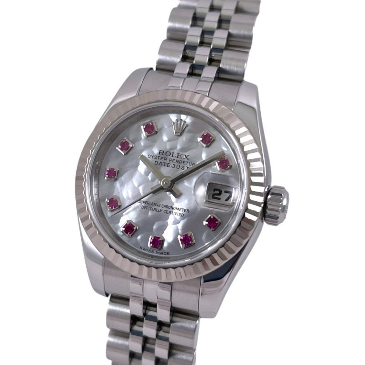 Pre-Owned ROLEX Rolex Datejust 26 179174NGR Watch, Stainless Steel, White Gold, Women's, Z Series, 2007, with Gala Shell and Ruby