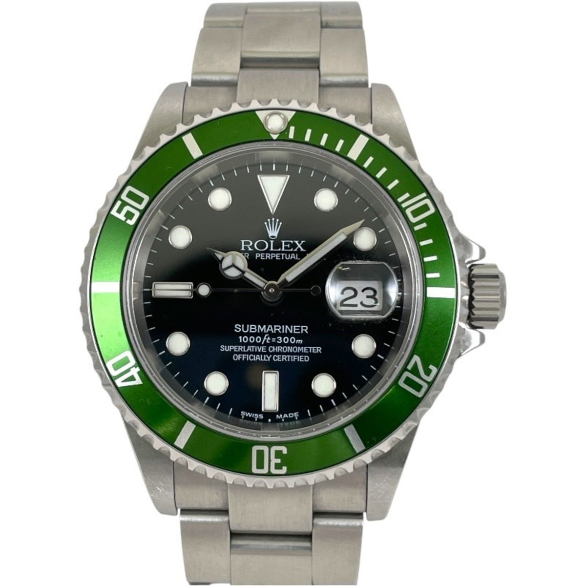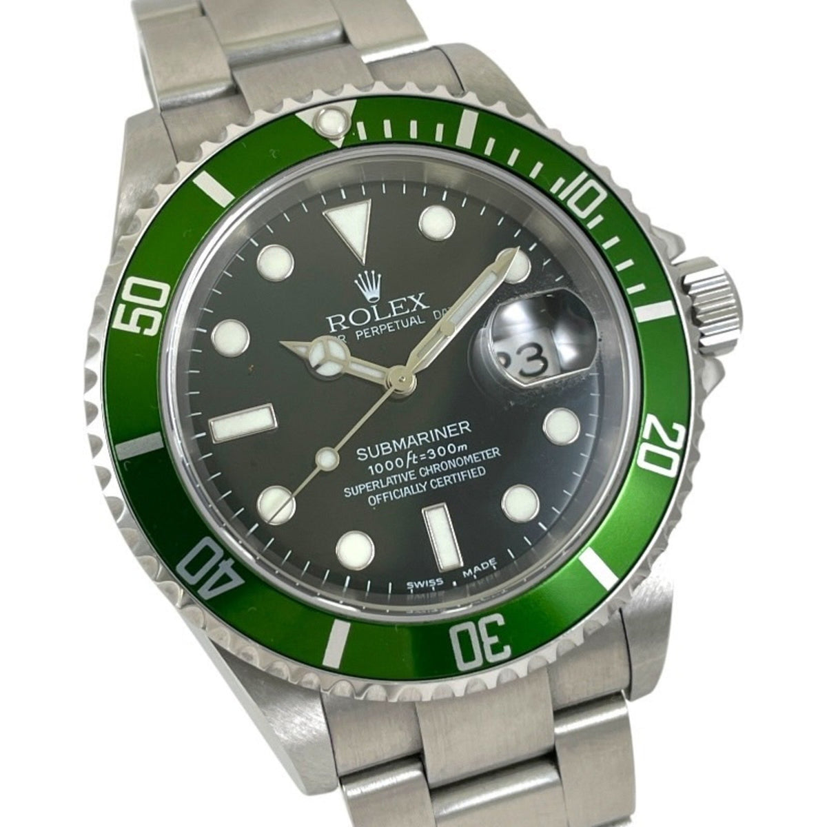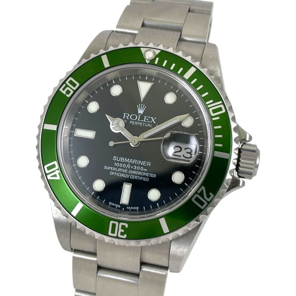 Pre-Owned ROLEX Submariner Date 16610LV Stainless Steel Men's Watch, F Series, Big Swiss, Green