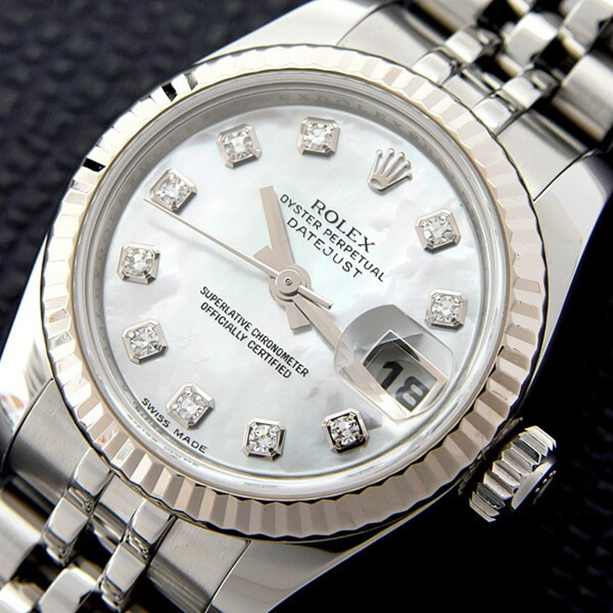 Pre-Owned Rolex Watch Datejust 10P Diamond Automatic V Serial SS x WG Shell Dial ROLEX 179174NG