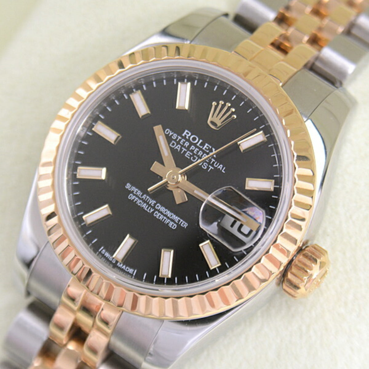 Pre-Owned Rolex Watch Ladies Datejust Black Dial Random Automatic Stainless Steel Yellow Gold ROLEX 179173