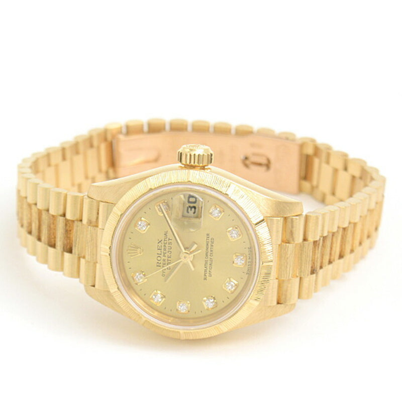 Pre-Owned Rolex Watch Ladies Datejust Bark Finish 10P Diamond Automatic Gold Dial A Series 750YG ROLEX 79278G