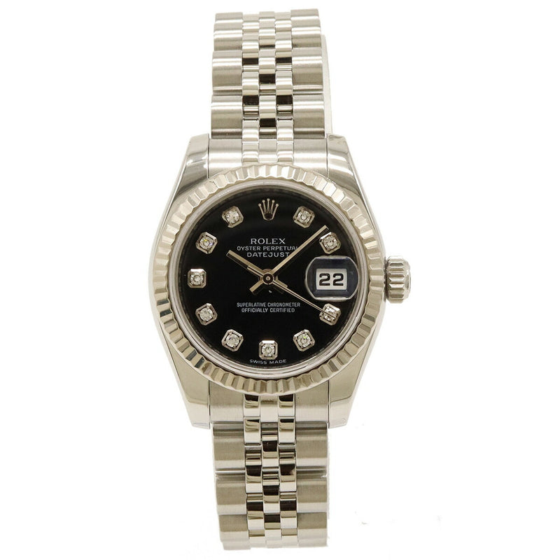 Pre-Owned ROLEX Rolex Datejust Roulette Random Product Number Black Dial K18WG SS 10P Diamond Ladies Automatic Watch 179174G