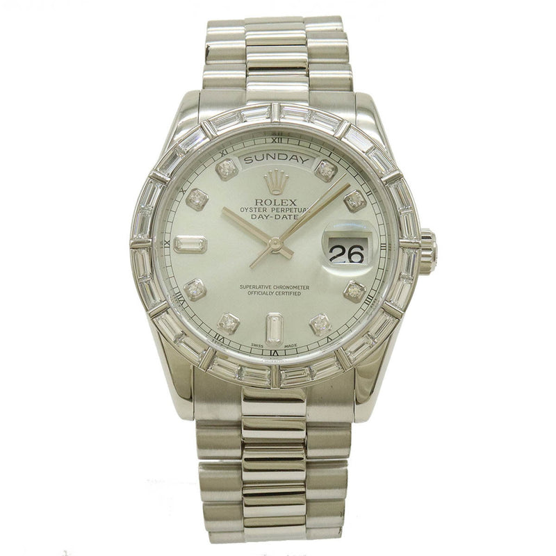 Pre-Owned ROLEX Rolex Day-Date Silver Dial Pt Platinum Diamond Bucket K Series Men's AT Automatic Watch 118366A