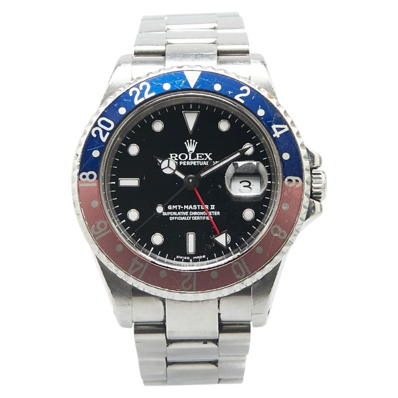 Pre-Owned Rolex 16710 GMT Master II Red and Black Bezel Tritium Watch Stainless Steel SS Men's ROLEX