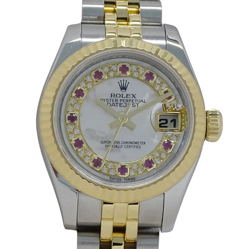Pre-Owned Rolex Datejust 179173NMR G-Series Women's Watch, Shell, Diamond, Ruby, Automatic, Stainless Steel, Gold, Yellow Polished