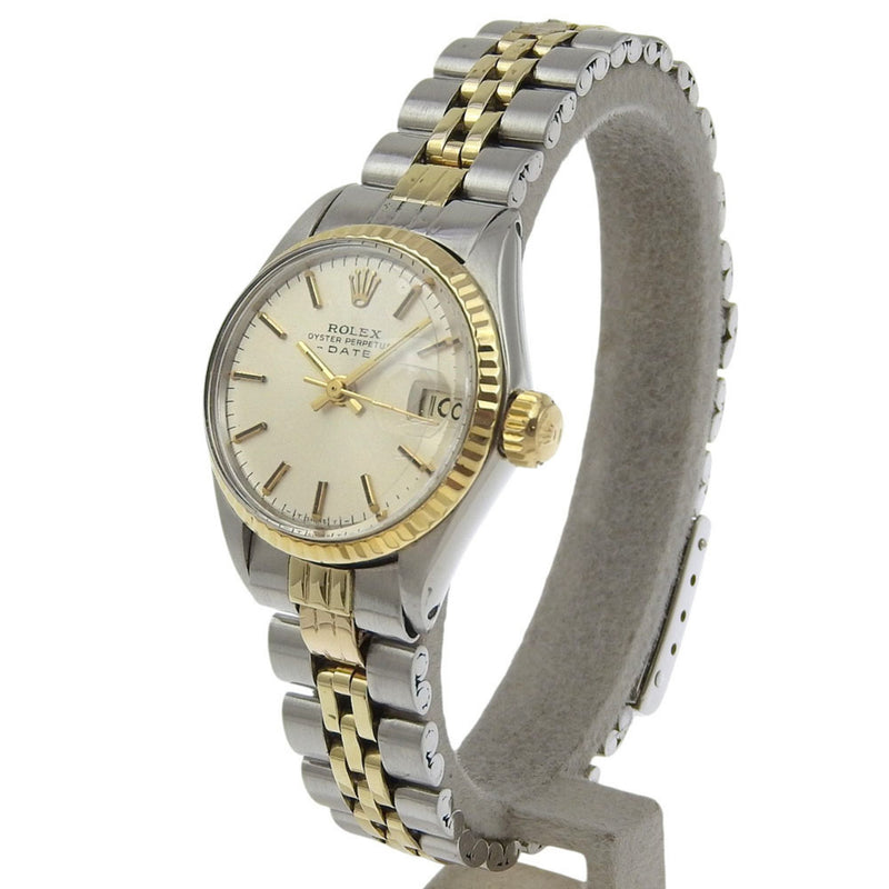 Pre-Owned Rolex Oyster Perpetual Watch, Date, Caliber 1161 6517, Stainless Steel and 18K Yellow Gold, Automatic, Analog Display, Silver Dial, Women's