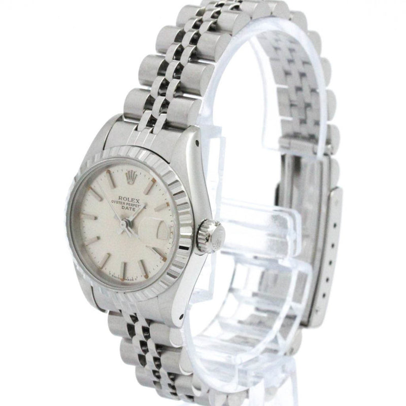 Pre-Owned ROLEX Oyster Perpetual Date 69240 18K White Gold Steel Automatic Watch