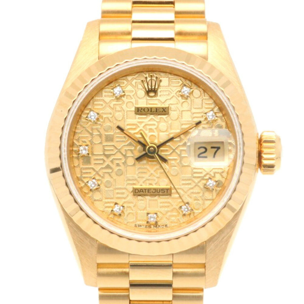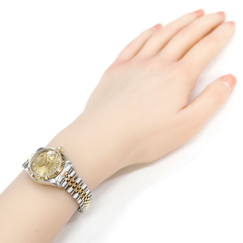 Pre-Owned Rolex ROLEX 69173 Datejust Automatic Wristwatch Champagne Mosaic Dial YG x SS Ladies 7-digit 9th series (manufactured in 1986)