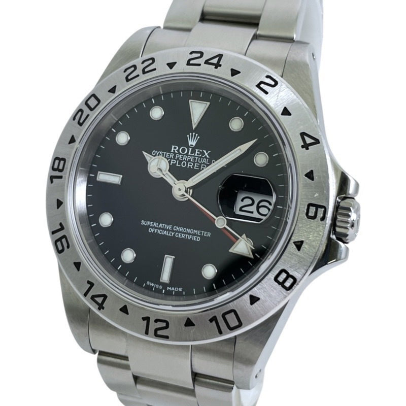Pre-Owned ROLEX Explorer II 16570 Stainless Steel Men's Watch, K Series, Black Dial, Automatic, Double Buckle