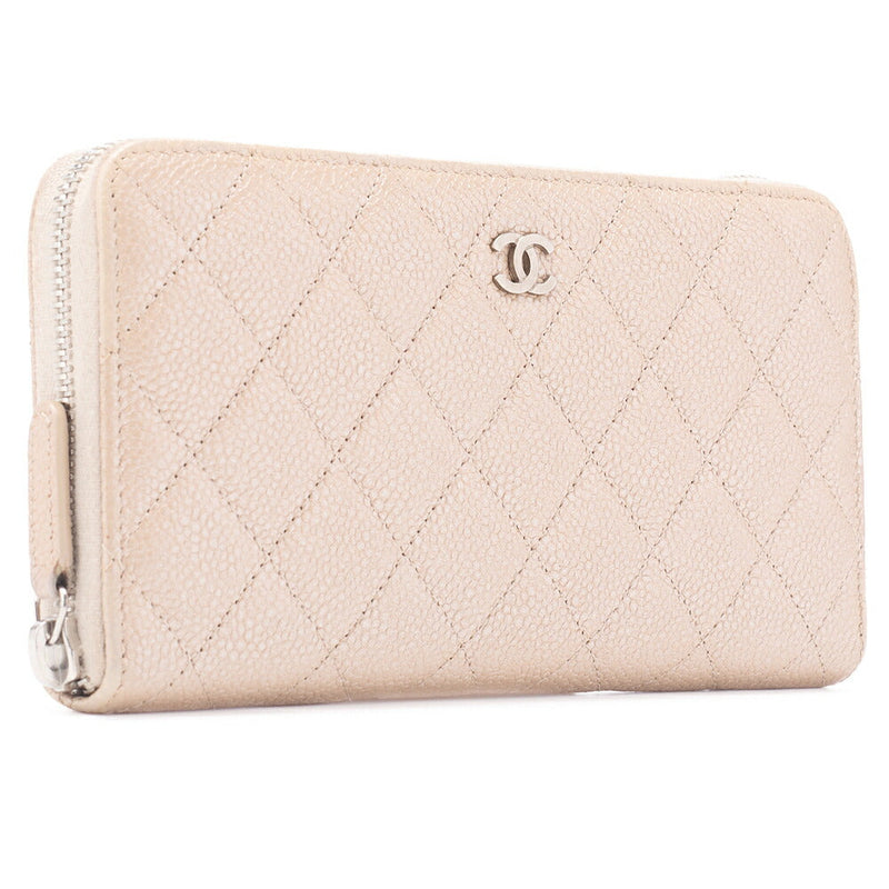 Pre-Owned Round Long Wallet, Matelasse, Caviar Skin, Beige, Gold-Tone Hardware, Pre-Owned