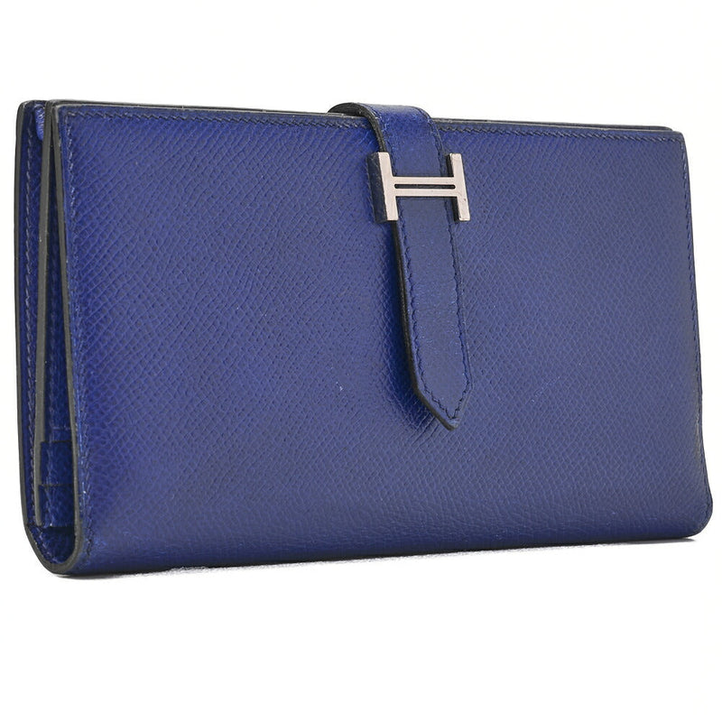 Pre-Owned Bearn Soufflet Bi-fold Long Wallet Epson Blue Electric Gold-Tone Hardware Pre-Owned
