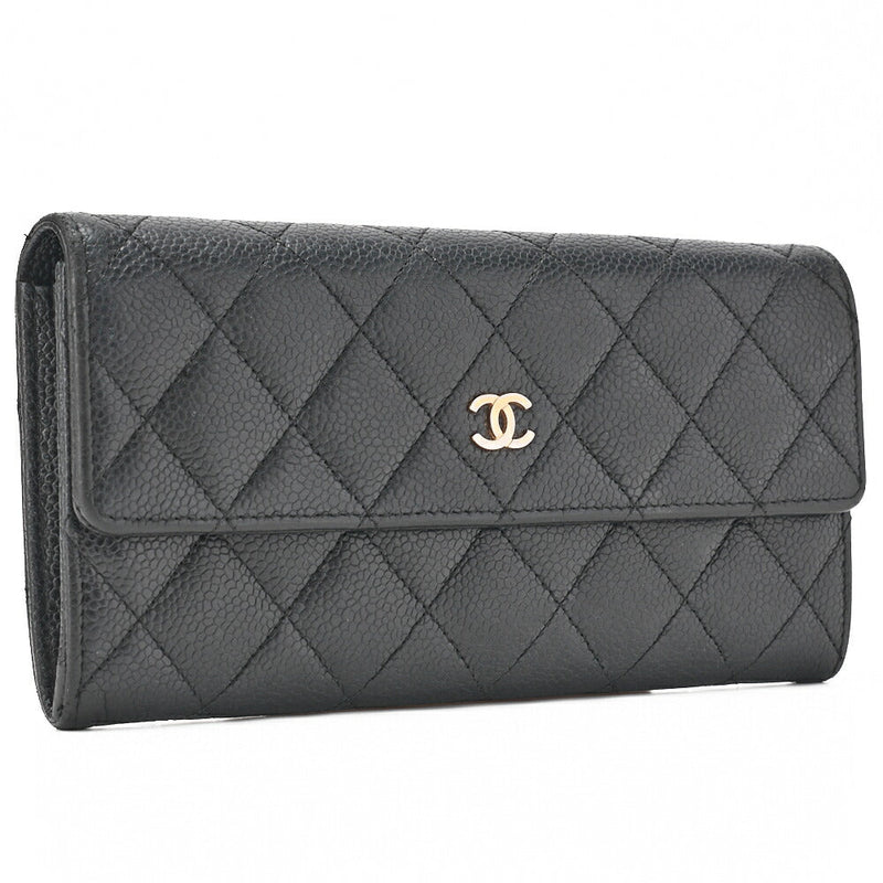 Pre-Owned Round Long Wallet, Matelasse, Caviar Skin, Black, Gold-Tone Hardware, Pre-Owned