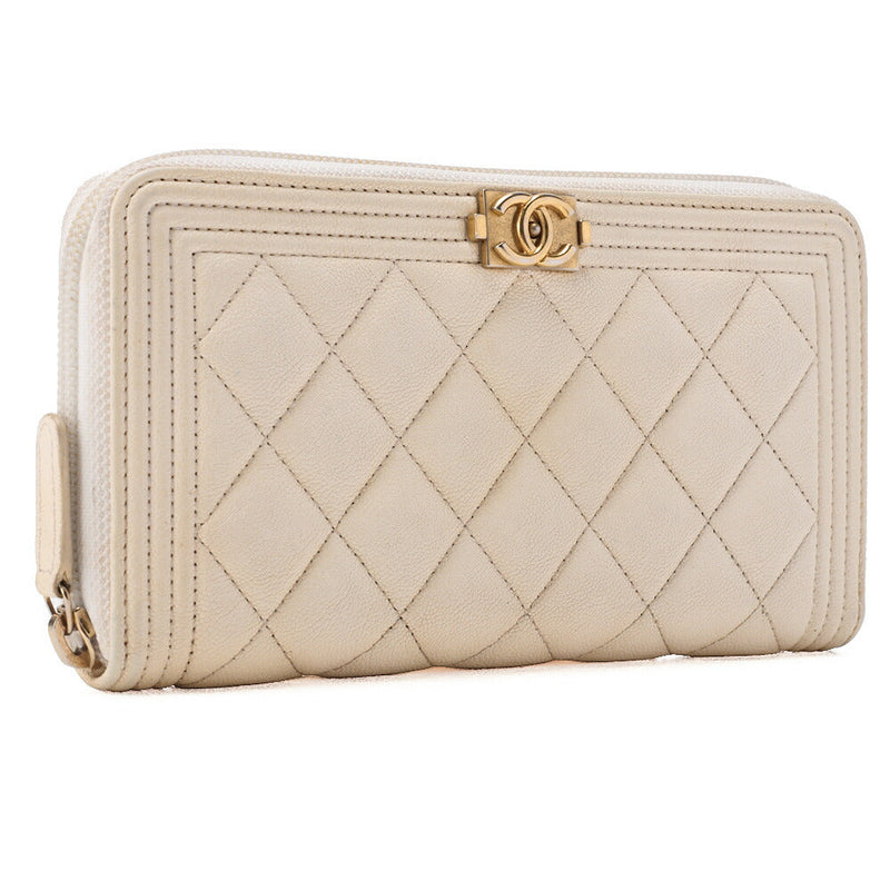 Pre-Owned Boy Matelasse Round Long Wallet Caviar Skin Ivory Gold-Tone Hardware Pre-Owned