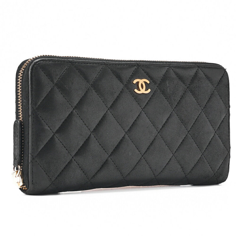 Pre-Owned Round Long Wallet, Matelasse, Lambskin, Black, Gold-Tone Hardware, Pre-Owned