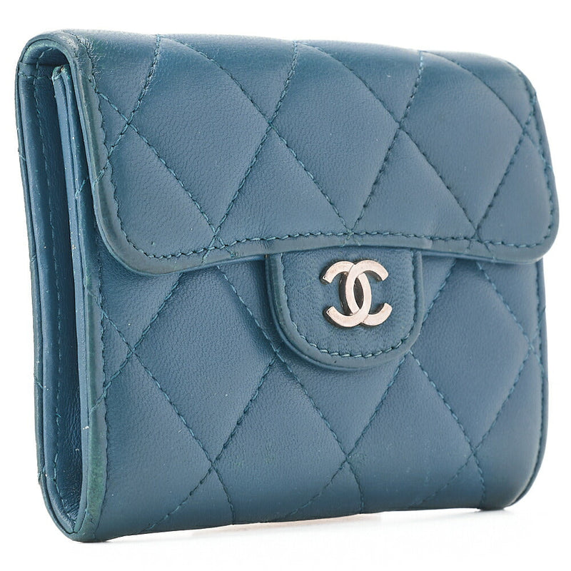 Pre-Owned Compact Wallet, Matelasse, Caviar Skin, Blue, Gold-Tone Hardware, Pre-Owned