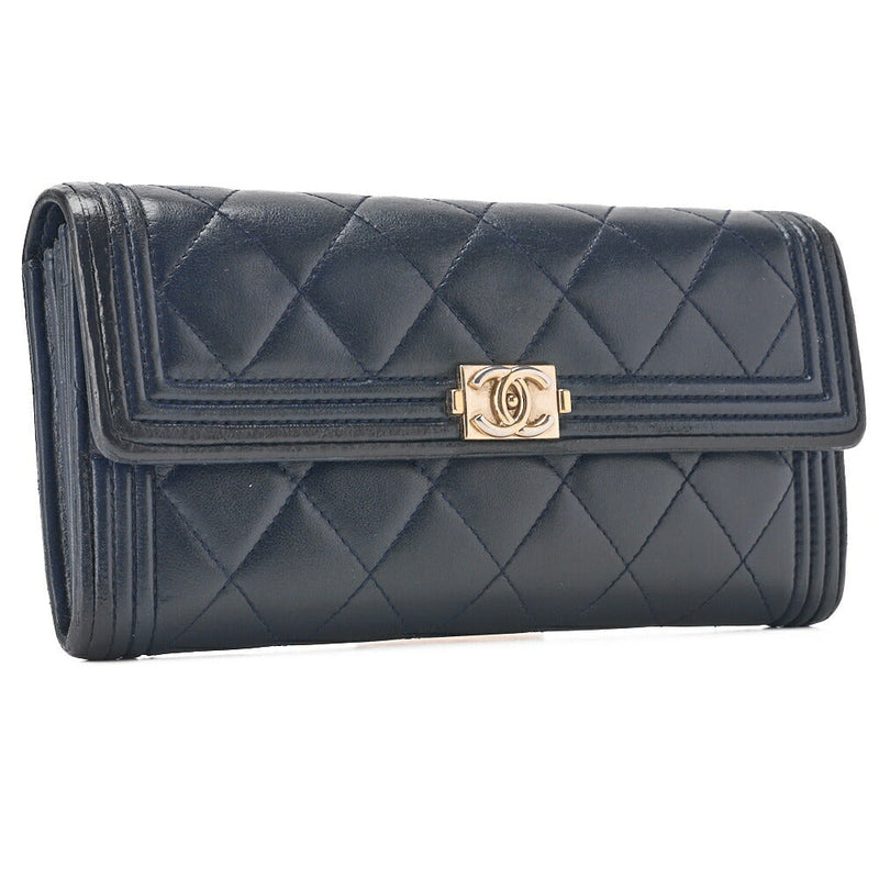 Pre-Owned Boy Matelassé Chain Wallet Caviar Skin Dark Navy Gold-Tone Hardware, Pre-Owned
