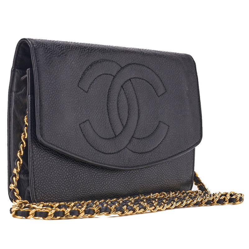 Pre-Owned Cocomark Chain Wallet Caviar Skin Gold-Tone Hardware, Pre-Owned