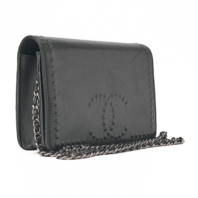 Pre-Owned Shoulder Bag Chain Wallet Caviar Skin Black Silver-Tone Hardware, Pre-Owned