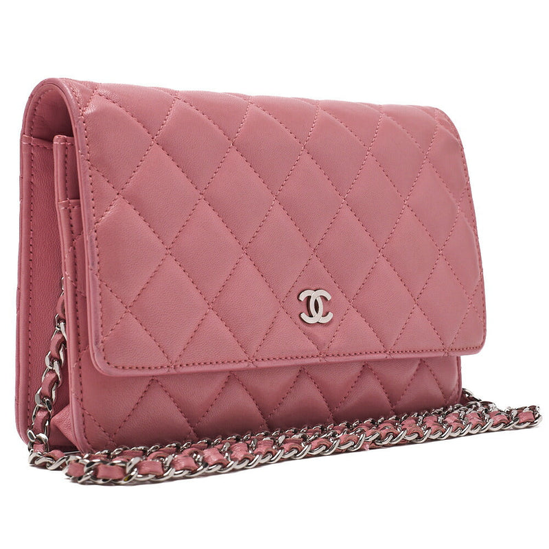 Pre-Owned Shoulder Bag Chain Wallet Lambskin Pink Gold-Tone Hardware, Pre-Owned
