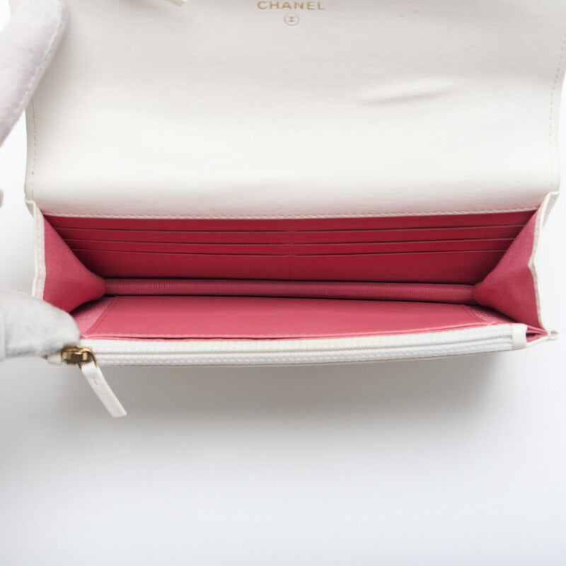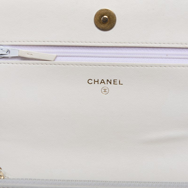 Pre-Owned Chain Wallet Matelasse Lambskin White Gold-Tone Hardware Pre-Owned