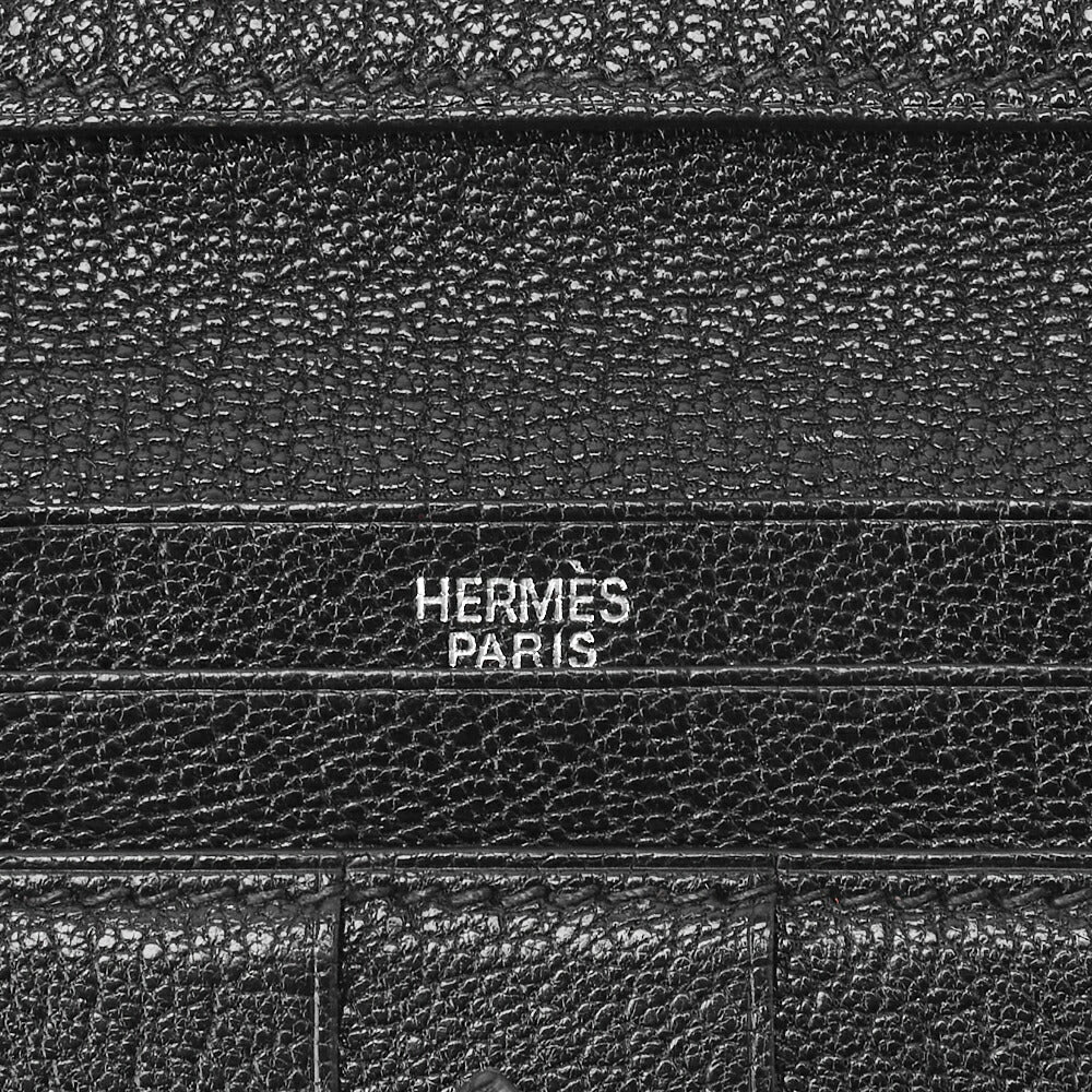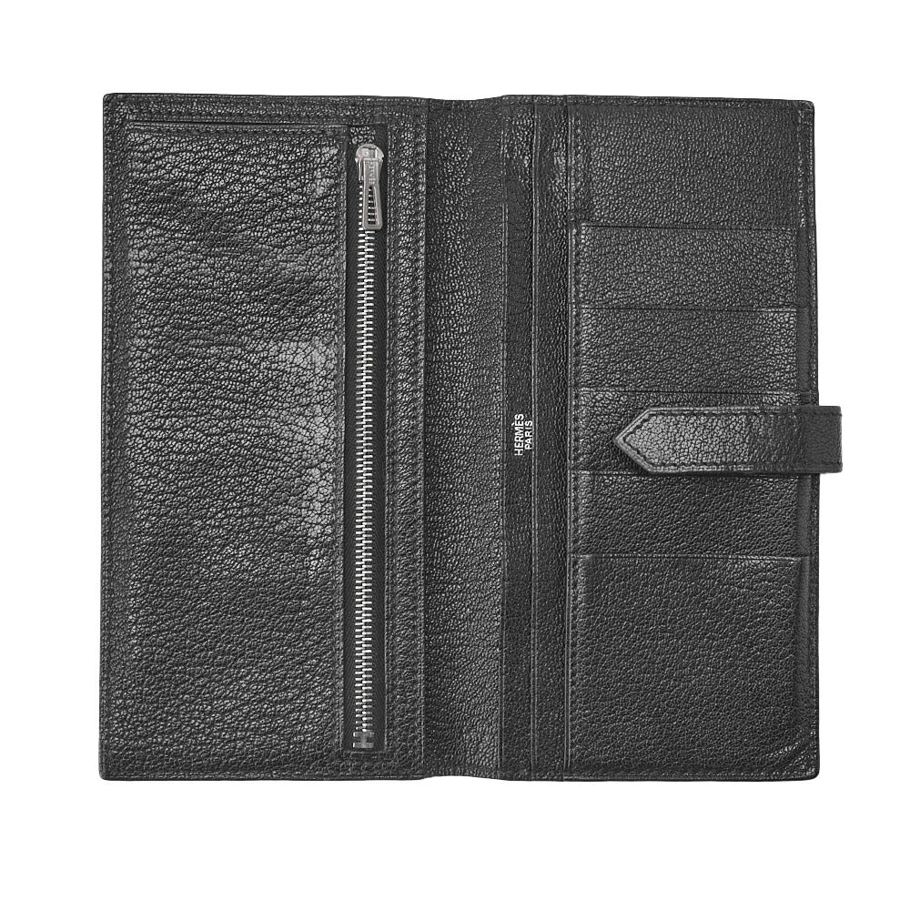 Discover the elegance and functionality of the HERMES Bairn Classic Bi-fold Long Wallet in luxurious Chèvre Black with striking silver metal fittings, a perfect addition to your collection. This exquisite wallet not only embodies the sophistication of HERMES but also offers a practical solution for everyday organization.