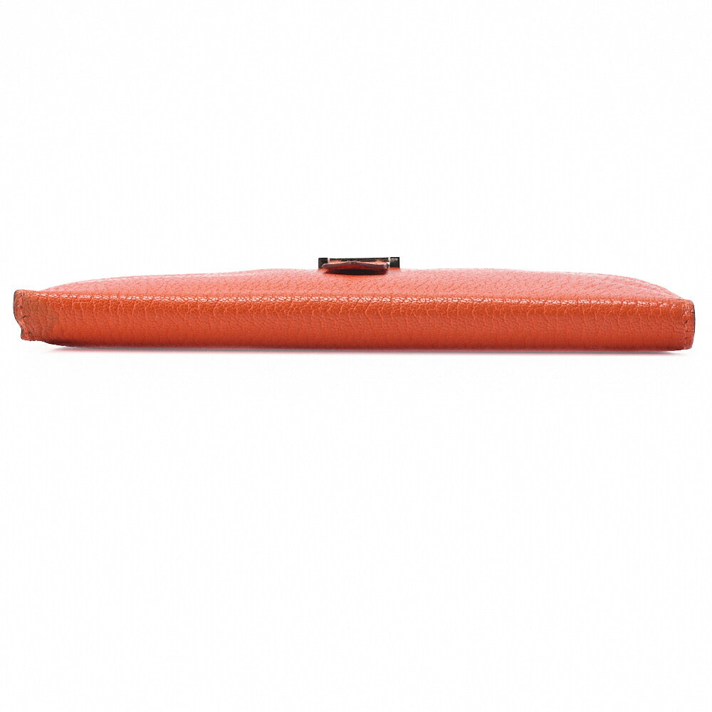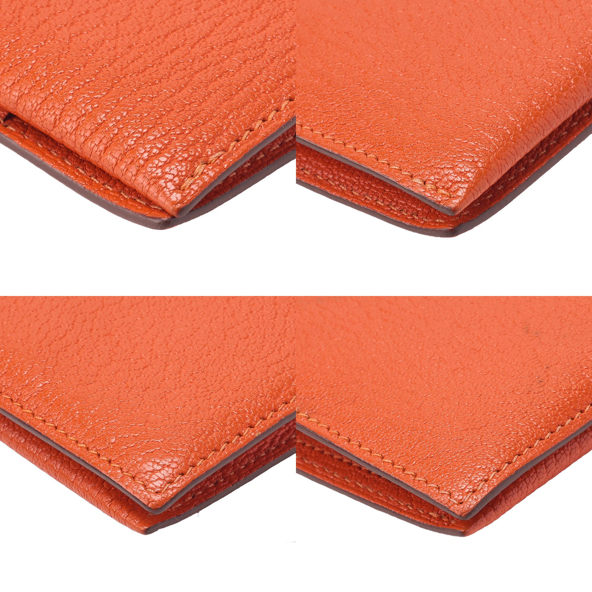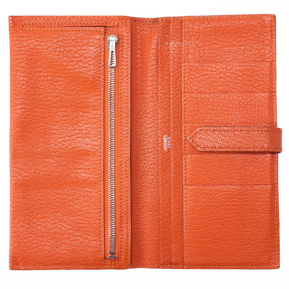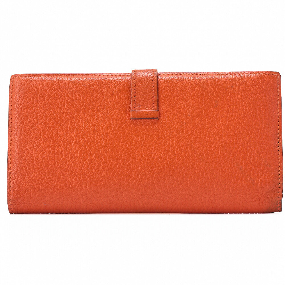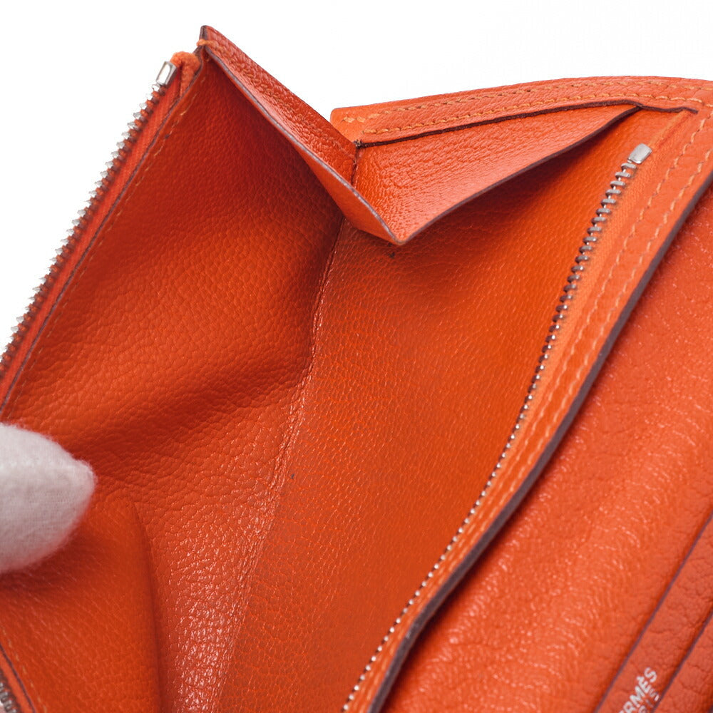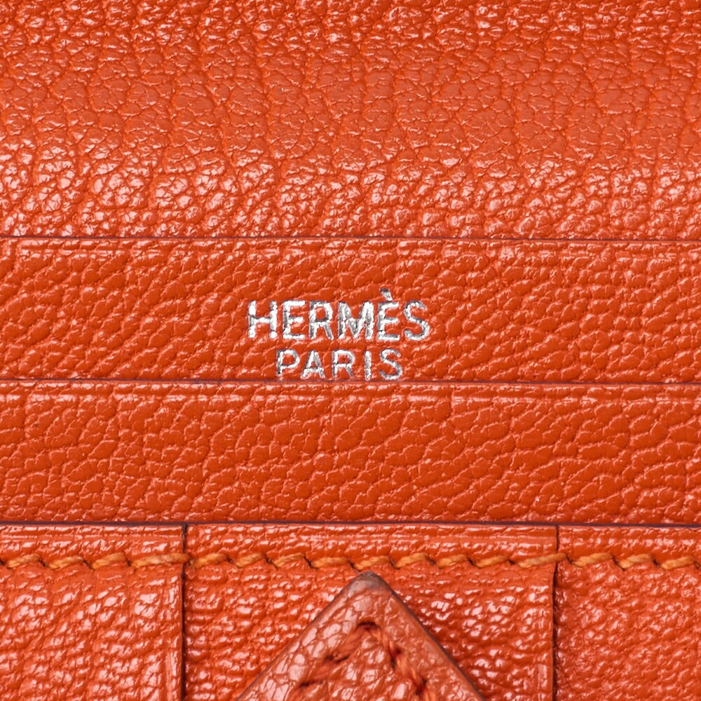 Introducing the HERMES Bairn Classic Bi-fold Long Wallet in a stunning Chèvre Orange with exquisite silver metal fittings. This elegant wallet is not just a fashion accessory; it’s a statement of sophistication and style.