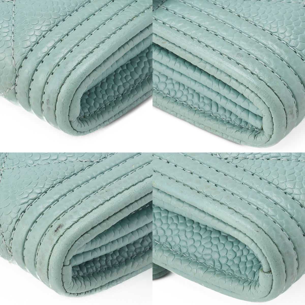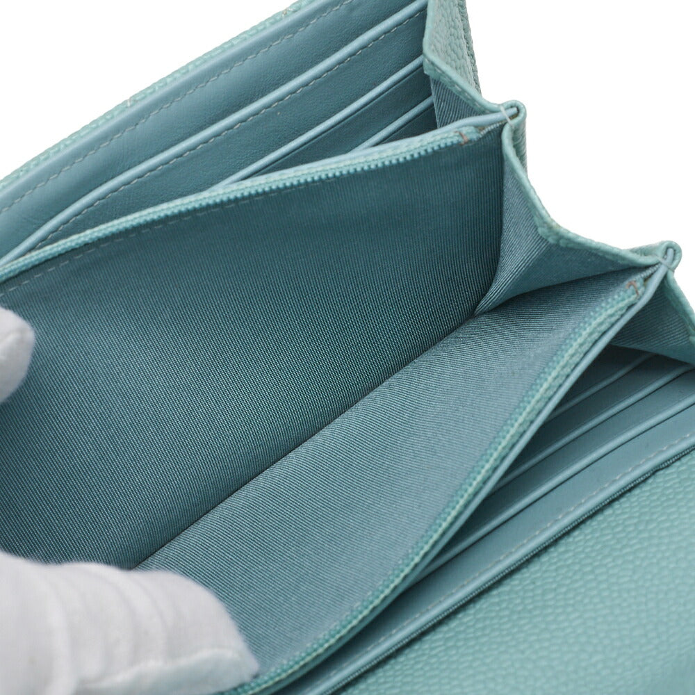 Pre-Owned Boy Matelasse Bi-Fold Long Wallet Caviar Skin Mint Green Gold-Tone Hardware Pre-Owned
