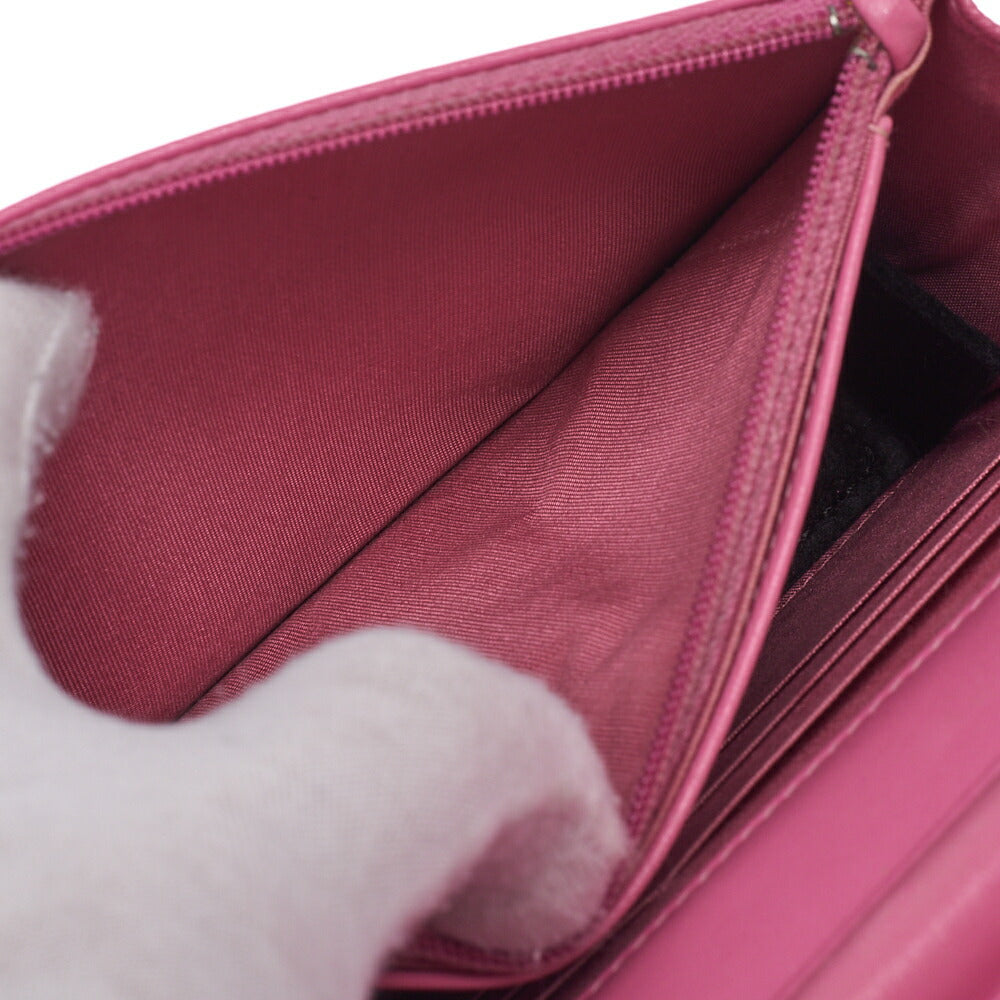 Elevate your accessory game with the CHANEL Boy Chanel Matelasse Chain Wallet, expertly crafted from luxurious Caviar Skin and designed in a stunning Pink hue complemented by elegant Gold fittings. This exquisite folding wallet is not just a statement piece; it's a blend of functionality and style that every fashion-forward woman needs.