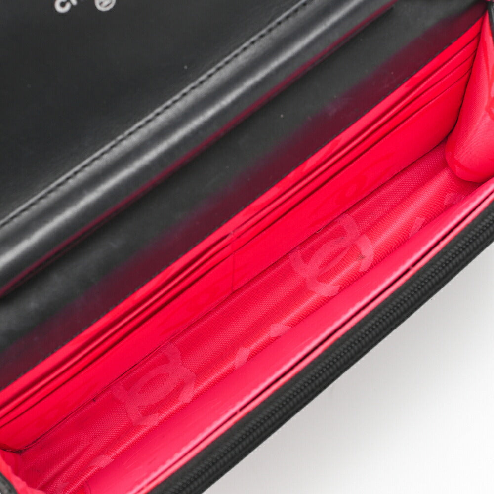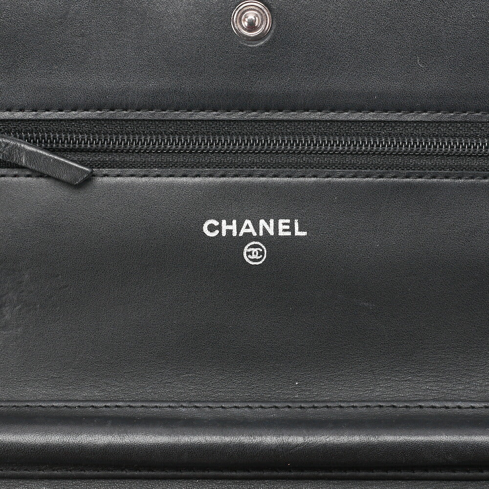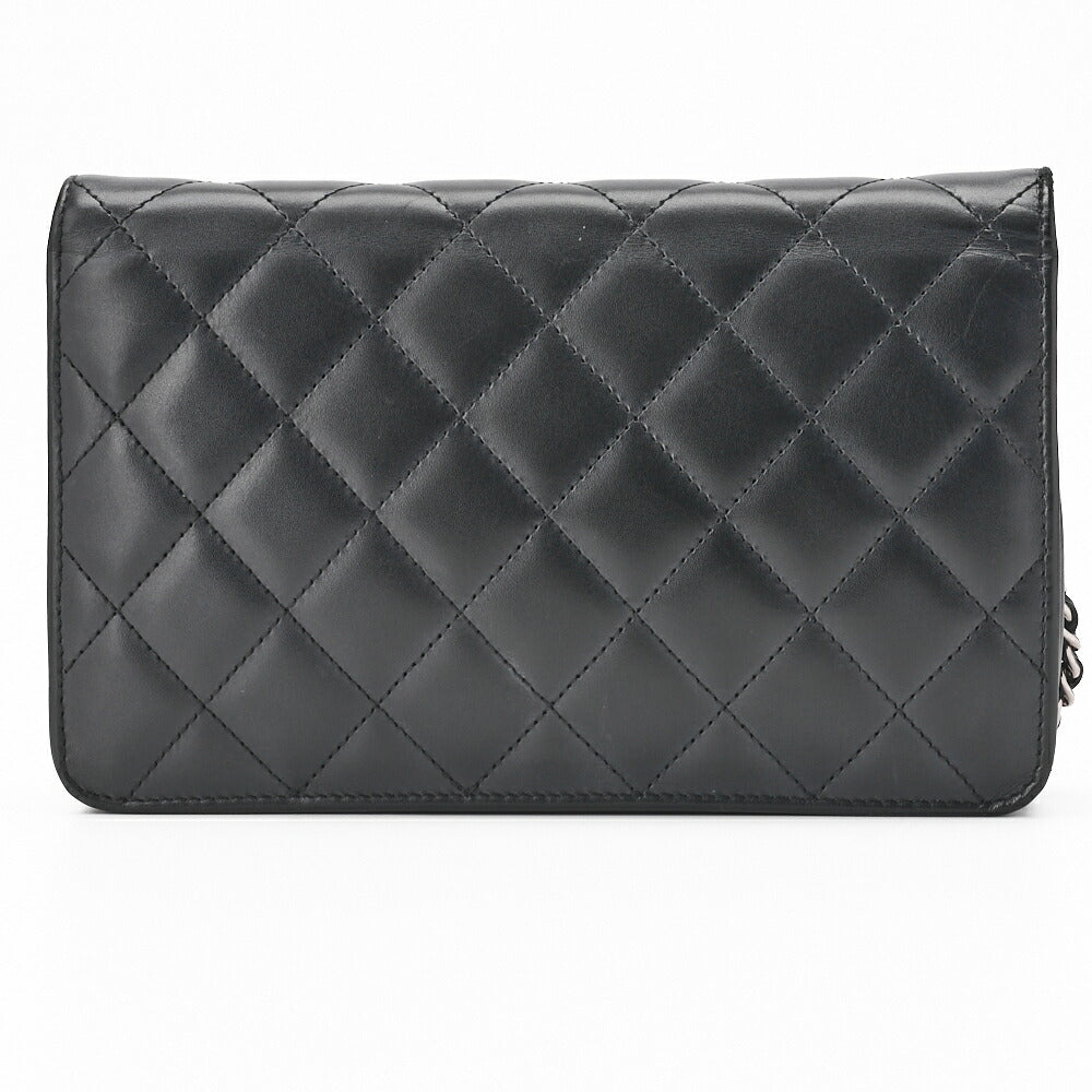 Pre-Owned Chain Wallet, Cambon Line, Folding, Calfskin, Black, Silver-Tone Hardware, Pre-Owned